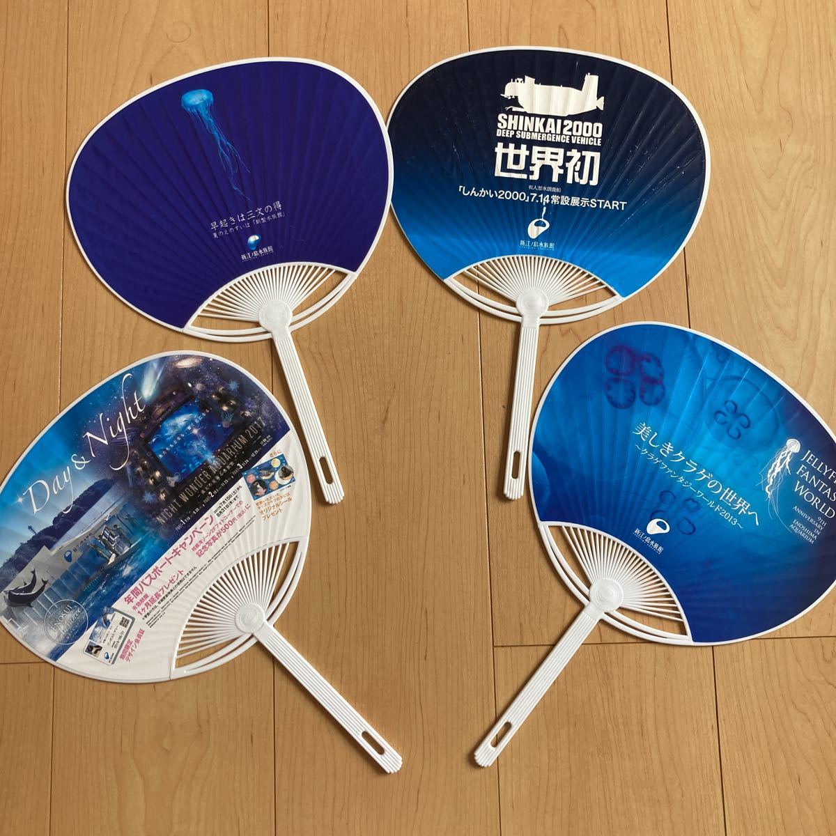 新江ノ島水族館のうちわ4枚です。古いものですので、傷や汚れなどがあります。