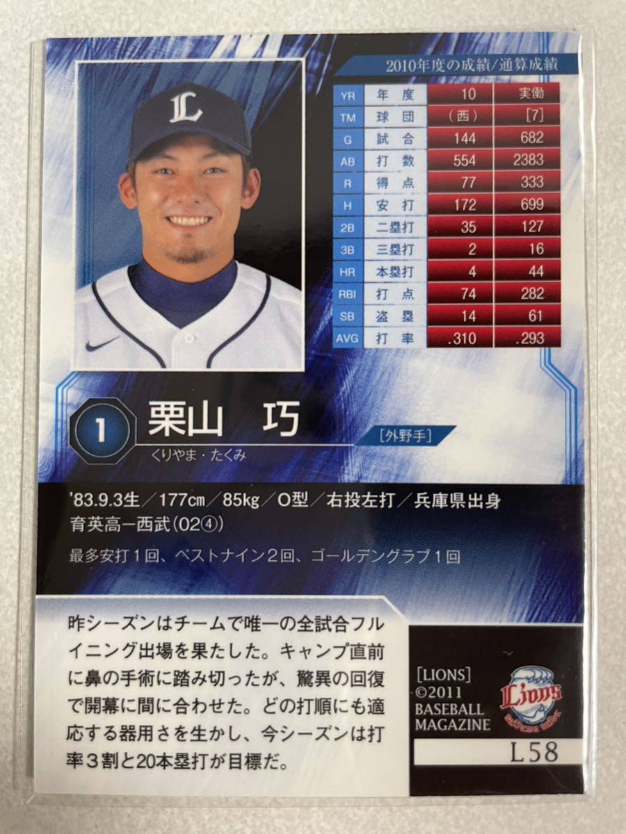 栗山巧  L58 BBM 2011 西部ライオンズ
