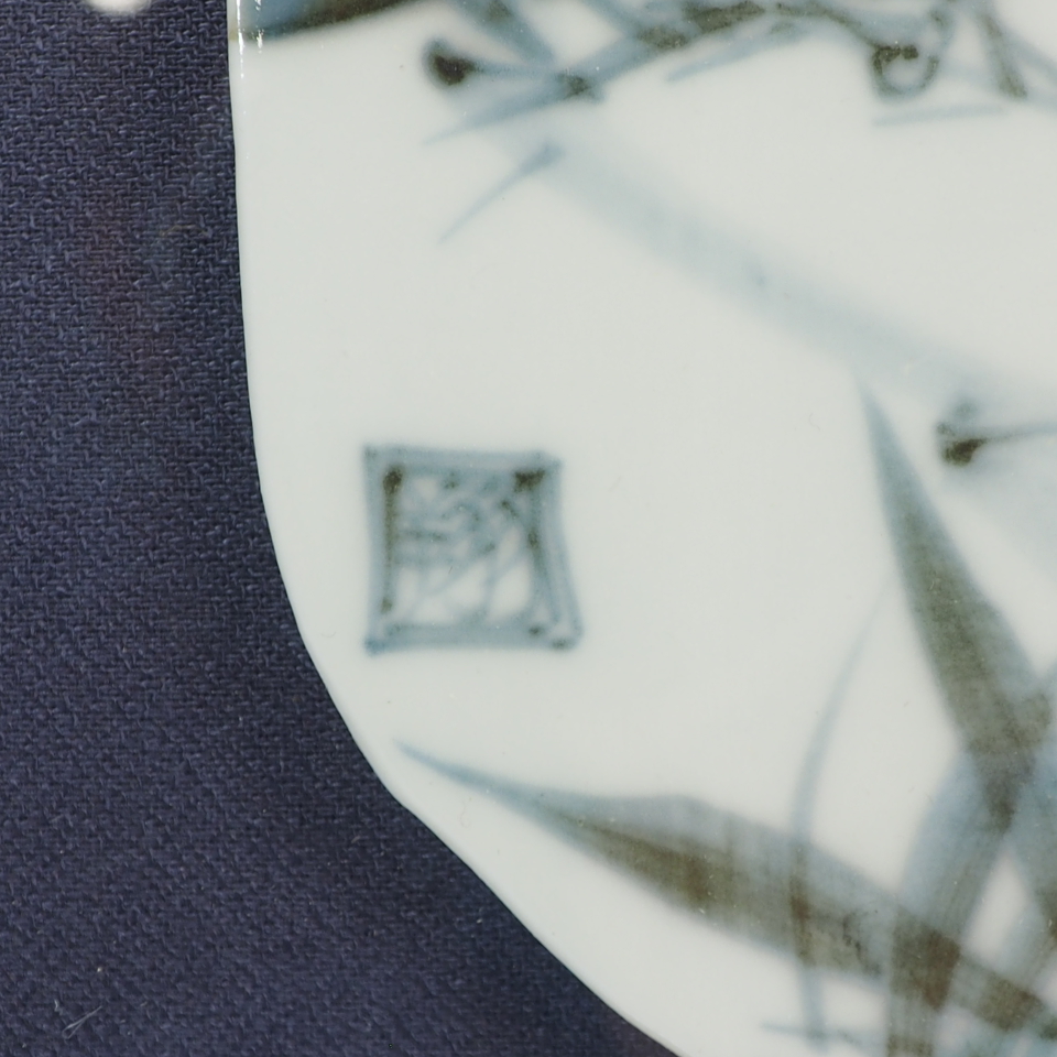 昭和ビンテージ 在銘 翔 金彩染付陶板「竹に雀」 額装品 額外サイズ 横32cm 縦35cm 厚み4cm KHK505
