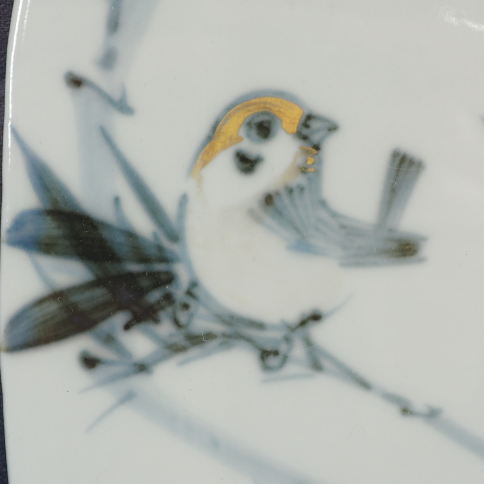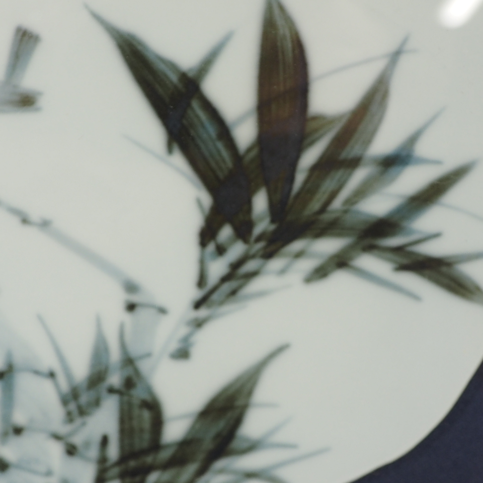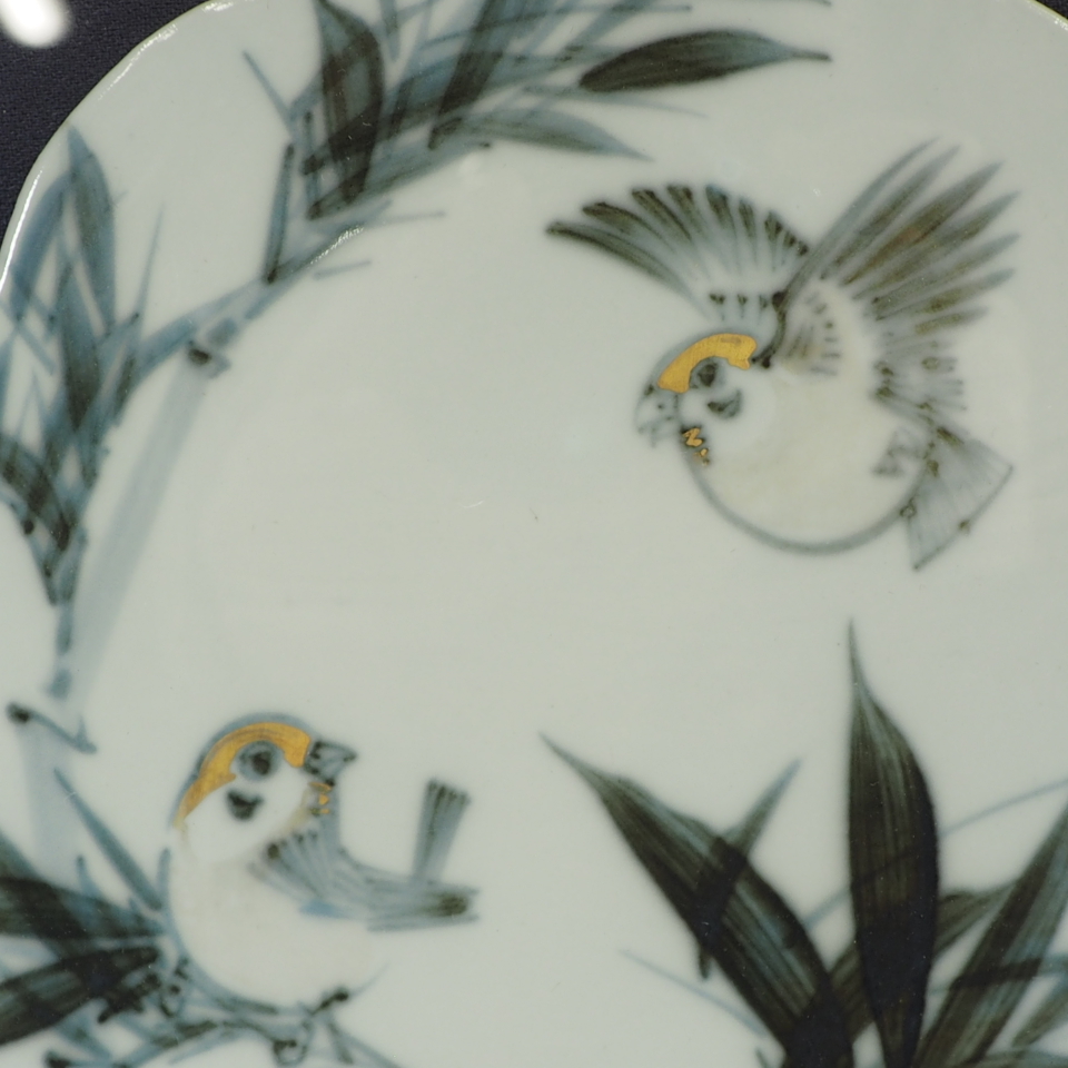 昭和ビンテージ  在銘 翔  金彩染付陶板「竹に雀」