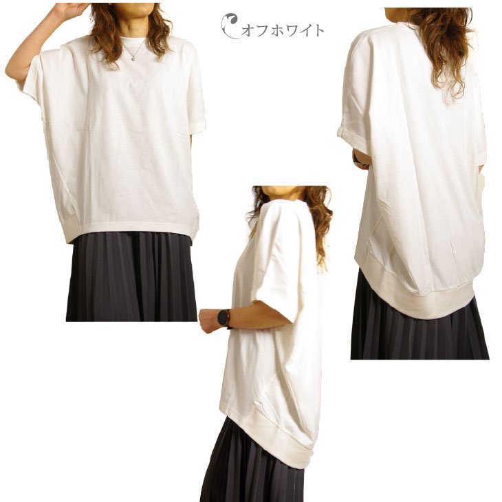 LL~3L カットソー 5分袖 レディース トップス Tシャツ ワイドサイズ ゆったり オフホワイト 新品