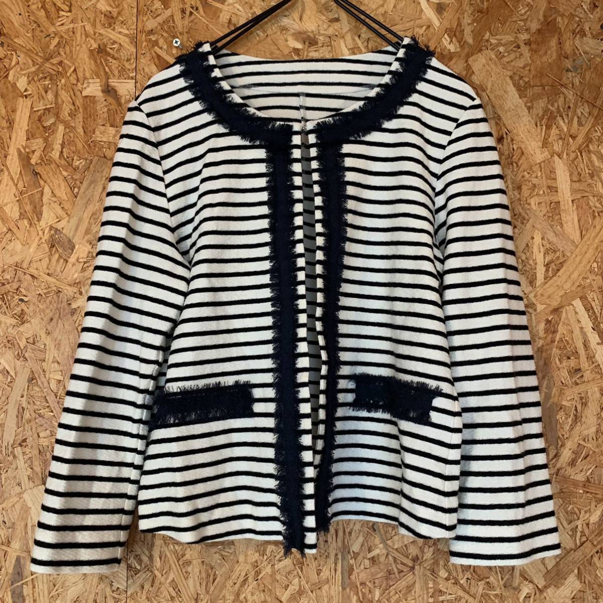 美品 オンワード樫山 ノーカラー ジャケット サマージャケット 羽織り 薄手ジャケット トップス 1701