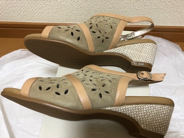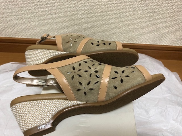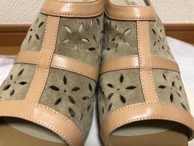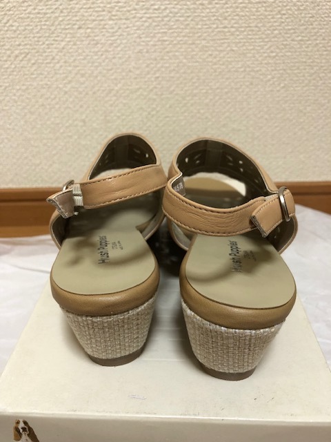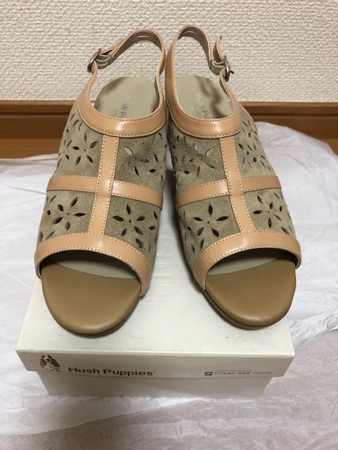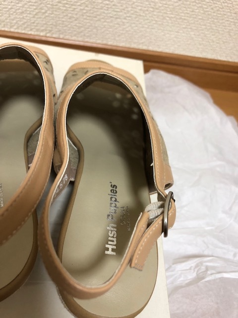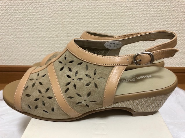 新品、Hush Puppies 【ハッシュパピー】天然皮革のサンダル★24㎝★1万9800円→5980円即決★送料510円~ベージュ色、ウッドソール