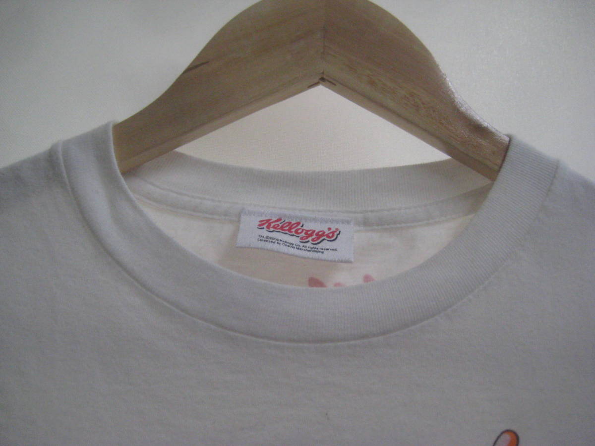Kellogg's ケロッグ トニー・ザ・タイガー プリントTシャツ です。 サイズ表記ありませんがキッズサイズ130位のサイズ感かと思われます。 実寸は平置きで着丈約53cm、身幅約39cm、肩幅約29cmぐらいです。 まだまだ問題なく着用頂ける状態かと思いますが、中古品ですので多少のスレ、汚れ等はご了承ください。 古着に対し神経質な方はご遠慮ください。ノークレーム、返品不可でご了承ください。 サイズに関しましては表記より実寸を参考にしてください。 画像の物が全てとなります。(ハンガー、トルソー、マネキン等の什器類は販売商品には含まれません。) ※着丈は後部の襟下から裾先を計測、身幅は脇下で直線で計測、袖丈は肩から袖先で計測(ラグラン等計測できない物は脇下から袖先で計測)、肩幅は肩部左右の直線で計測(ラグラン等は計測不可)といたします。多少の誤差は許容範囲としてご了承ください。 他にも古着関連、多数出品しております。同梱可能ですので是非ご覧ください。 注意:ご入札前に商品説明、送付方法、支払方法、その他の欄をよく読んでご理解頂ける方のみご入札をお願いいたします。 管理ナンバー(T-02222) | |||