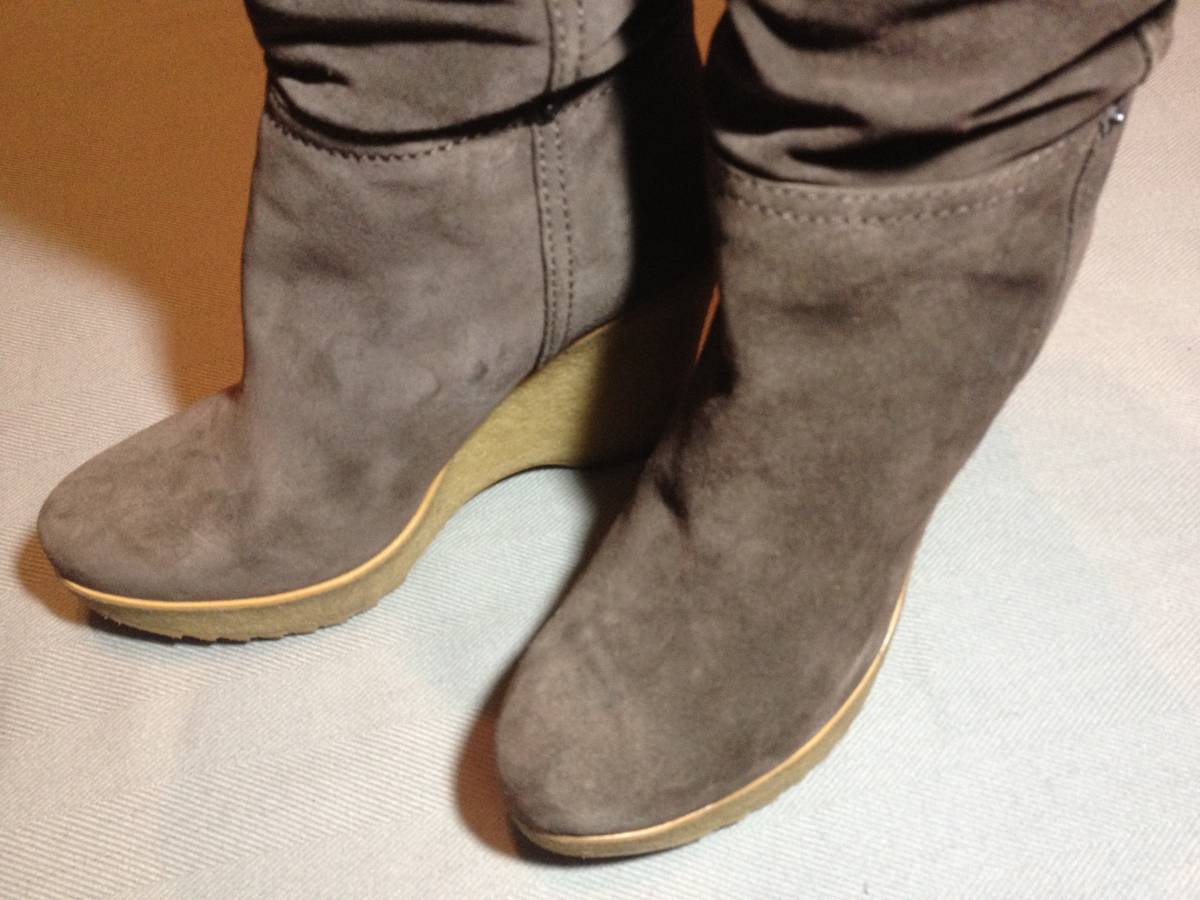 サイズは40、色はベージュブラウン系です。素材はスウェードです。