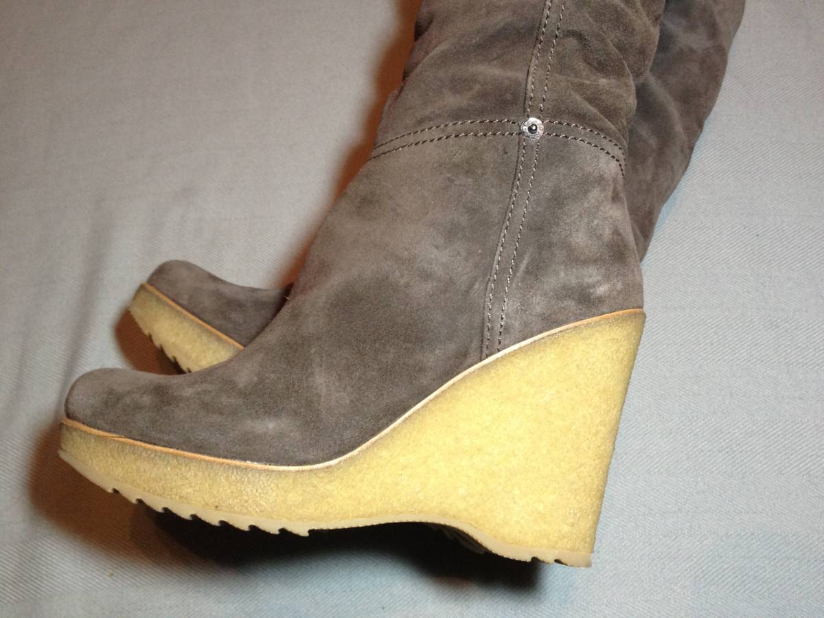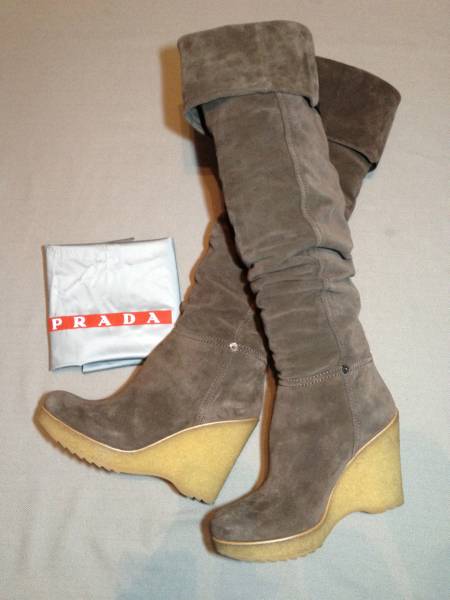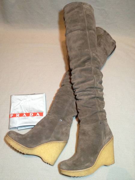 新品 プラダ ギャザー ニーハイ レザー ロング ブーツ 40 b prada 本革 靴 シューズ ベージュ ブラウン