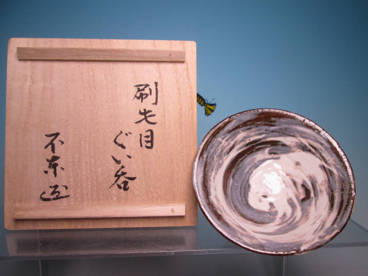 ☆名工 細川護煕 不東 刷毛目 ぐい呑 (共箱) 元総理大臣 お料理屋さんの器 酒器/酒盃/酒杯/懐石/割烹