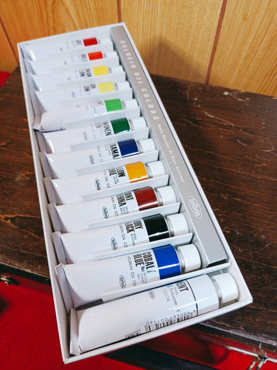 貴重 油絵セット 油彩セット 油絵の具 HOLBEIN OIL COLORS 12色 B915 パレットナイフ ケース