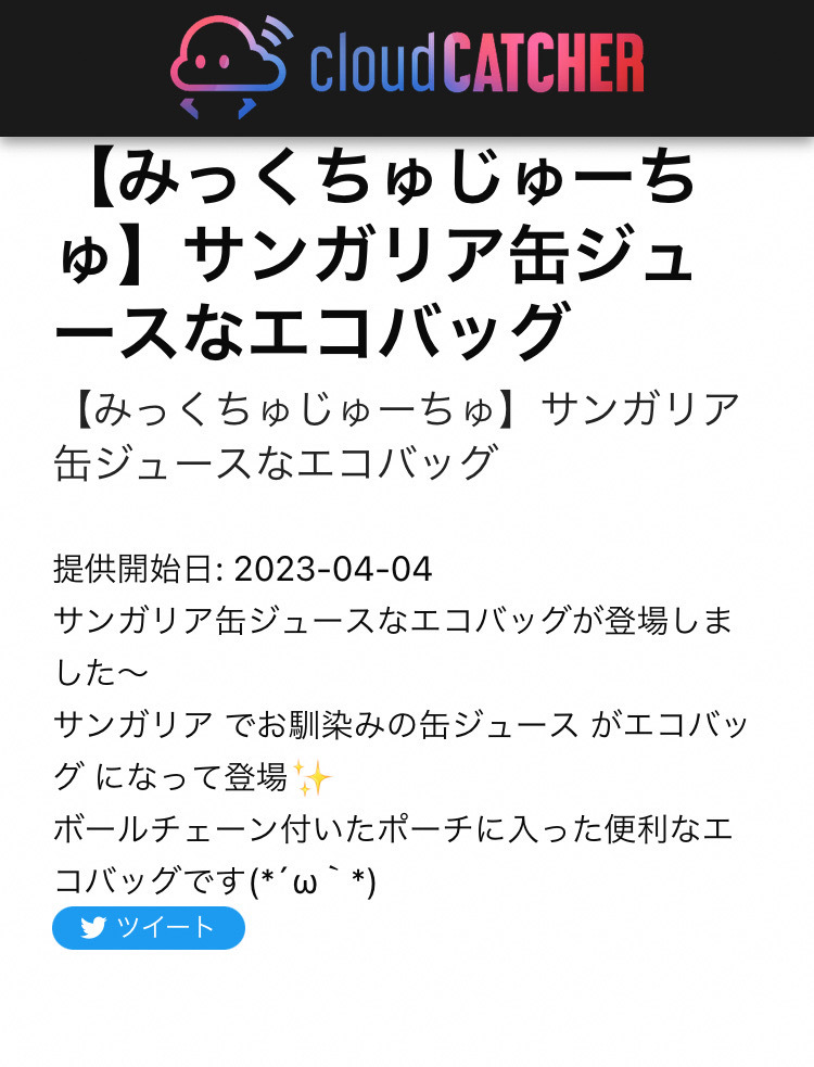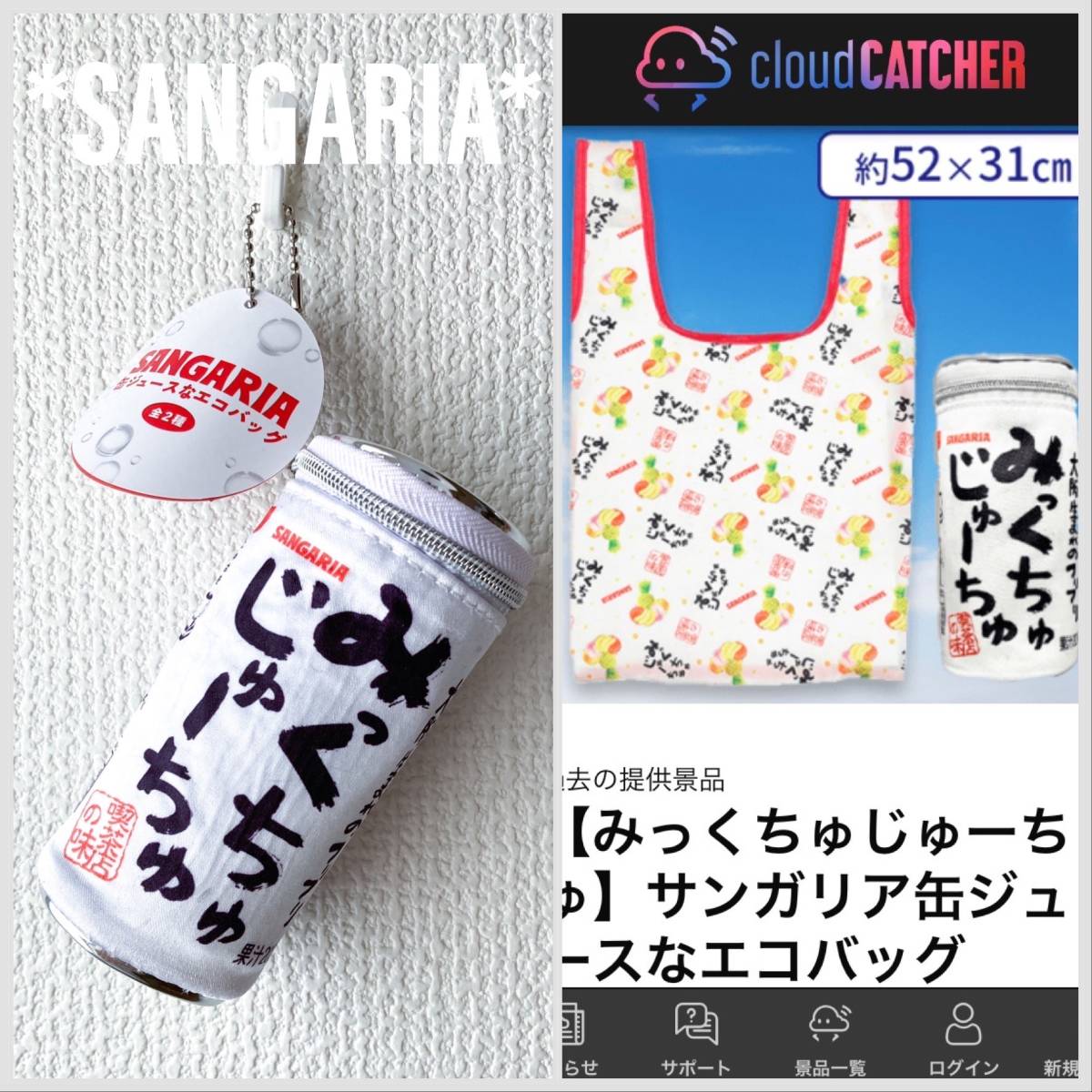 非売品 2023年4月発売 クレーンゲーム 限定品 みっくちゅじゅーちゅ サンガリア エコバッグ 折り畳み アミューズメント 景品