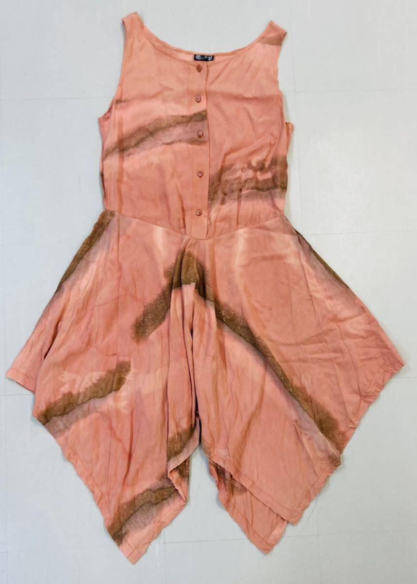 海外の物でサイズ表示はありませんが、M〜L、平置きウエスト約40cm、着丈約75〜105cm、ゆったりした着心地です。