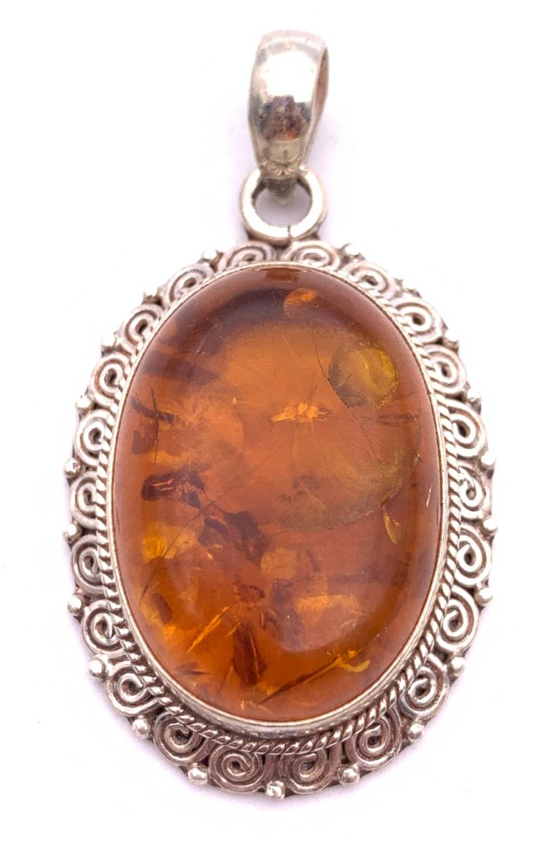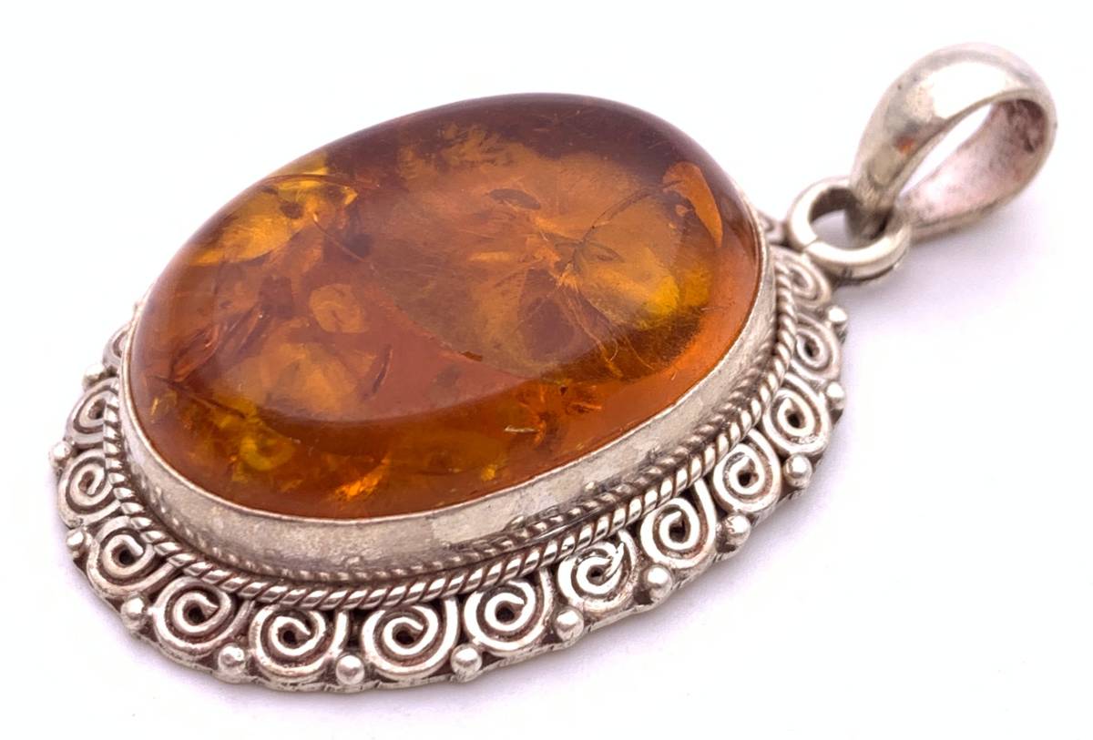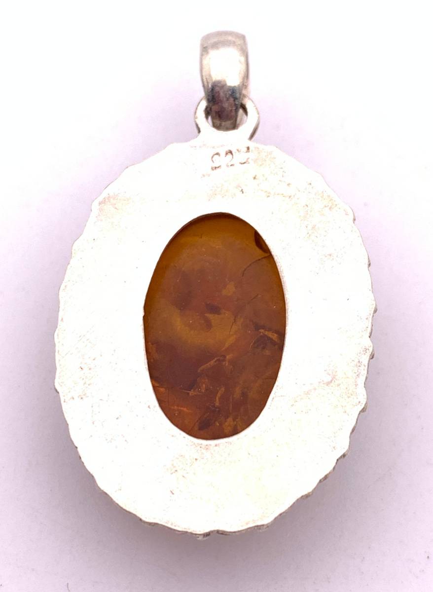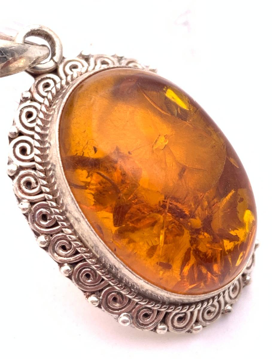 アンバー(琥珀) silver925トップ/HANDMADE