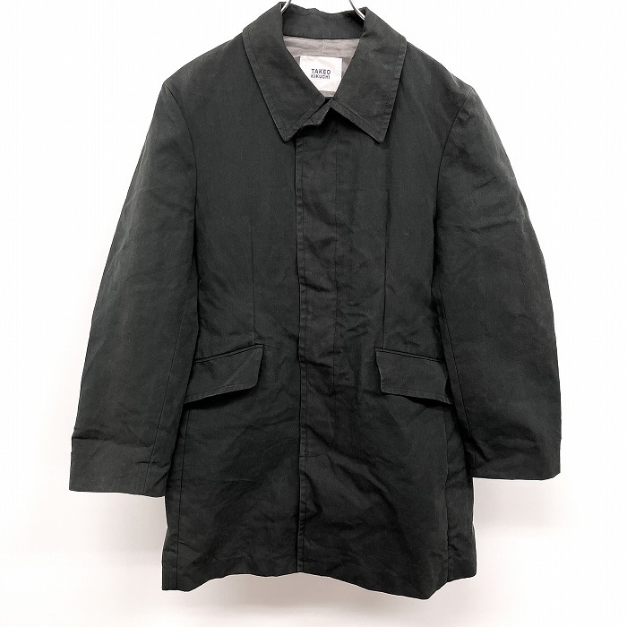 商品タイトル | TAKEO KIKUCHI タケオキクチ 2 メンズ ステンカラーコート 背抜き裏地 ボタン留め 無地 ボンディング加工 長袖 綿100% コットン ブラック系 |