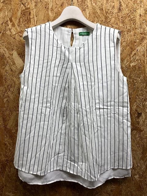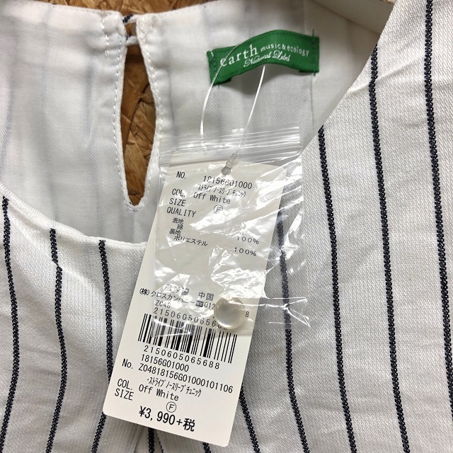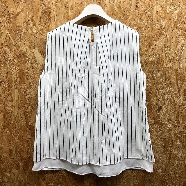 商品タイトル | 【訳アリ】 earth music&ecology F レディース ノースリーブシャツ ストライプ 裏地付き 綿100%(ポリ裏地) ホワイト×ブラック |
