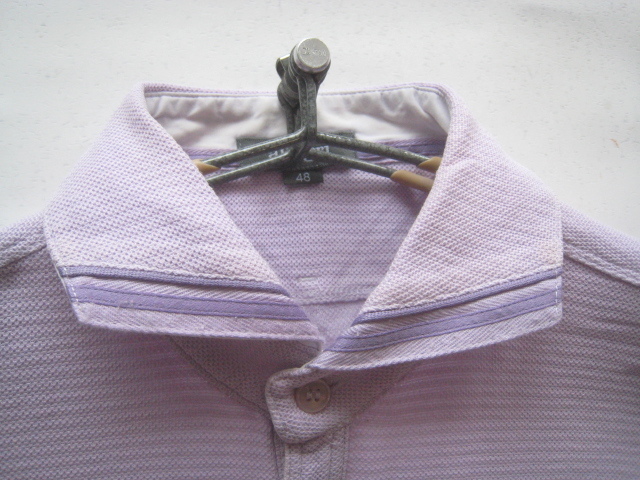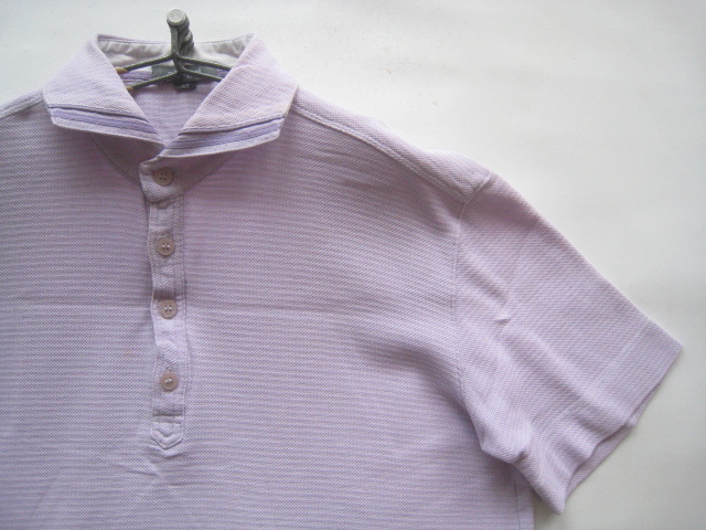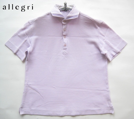高級日本製!!アレグリ allegri*ラインデザイン 半袖ポロシャツ 48 L 淡い紫 三陽商会