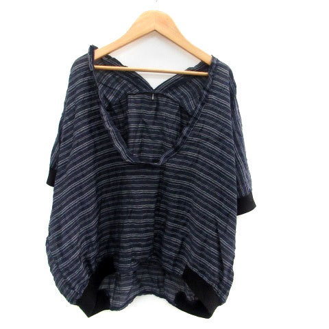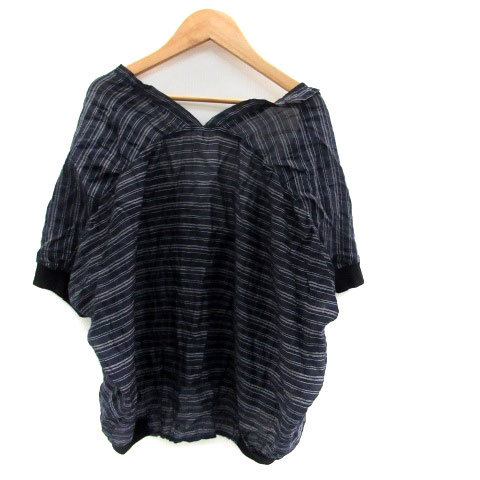 ケイビーエフ KBF アーバンリサーチ ブラウス カットソー Vネック 半袖 ボーダー柄 紺 ネイビー オフホワイト /HO5 レディース