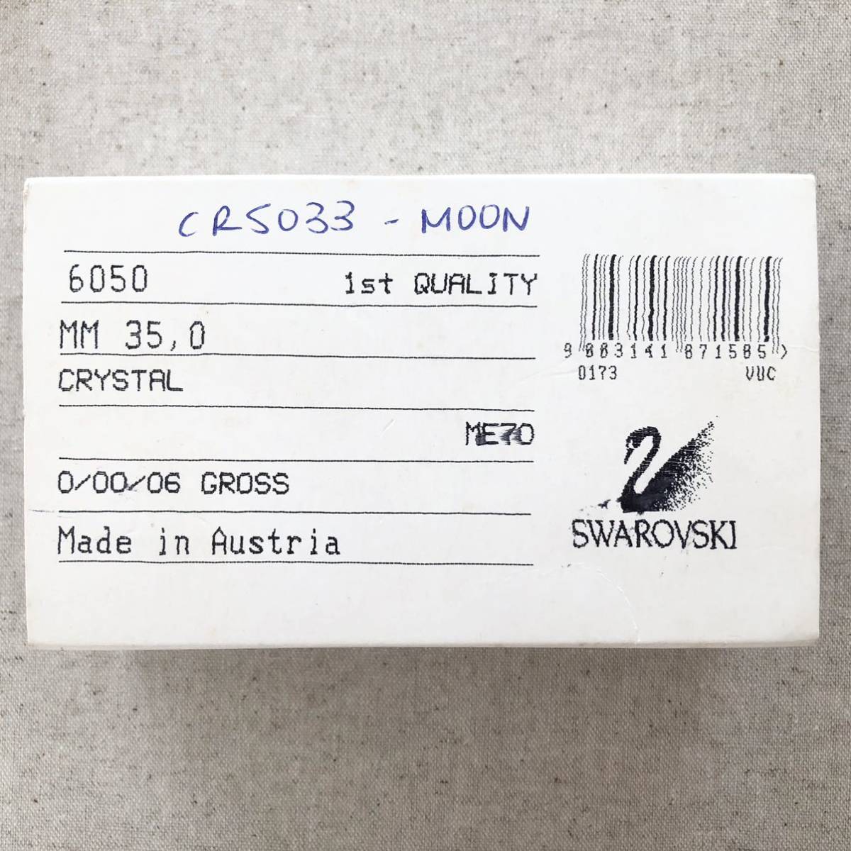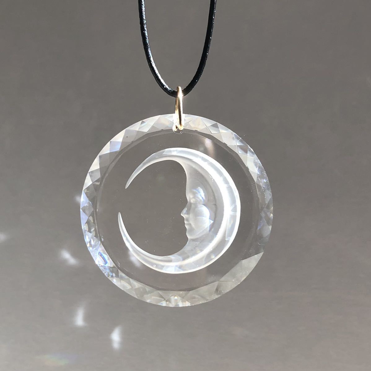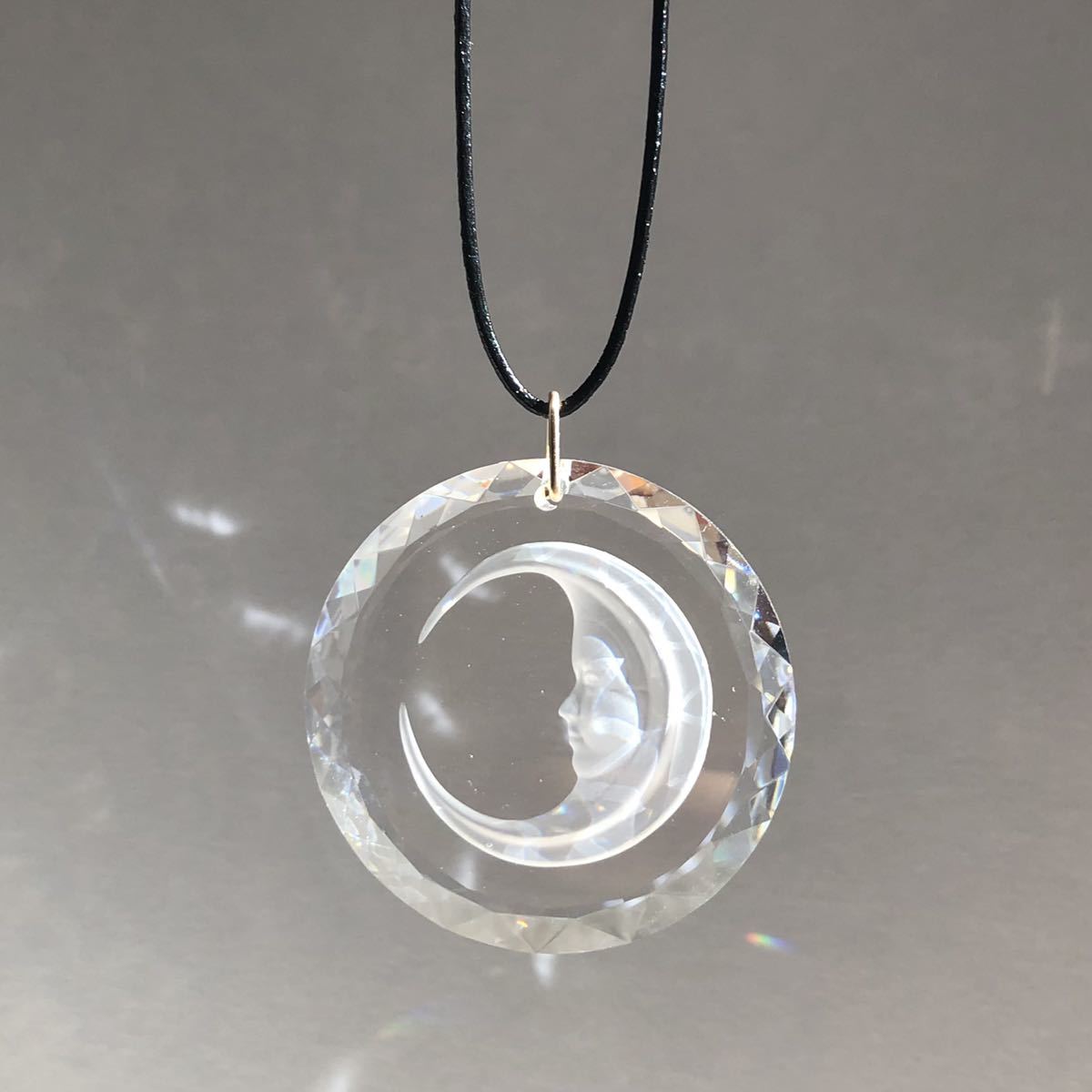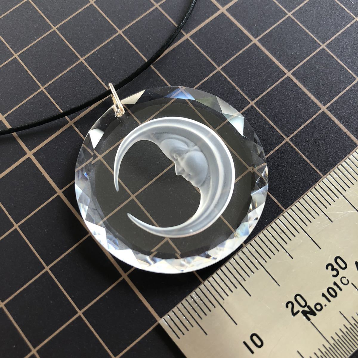 ヴィンテージスワロフスキー35mm 月 Moon 6050 黒本革ひもロングネックレス レア廃盤品サンドブラストインタリオ ビンテージ