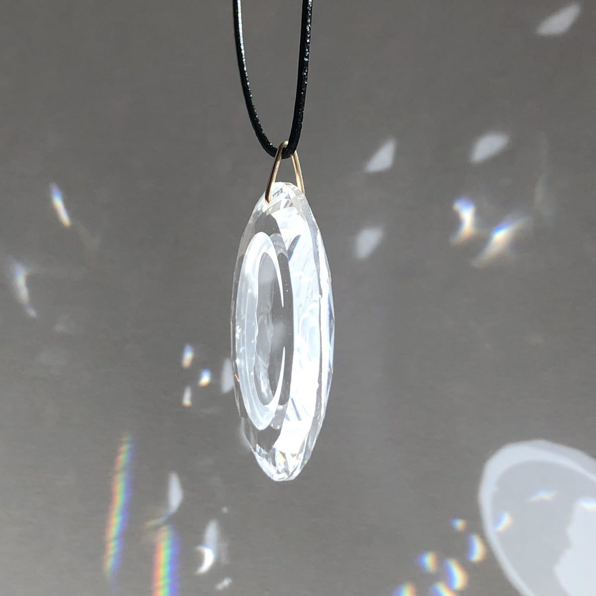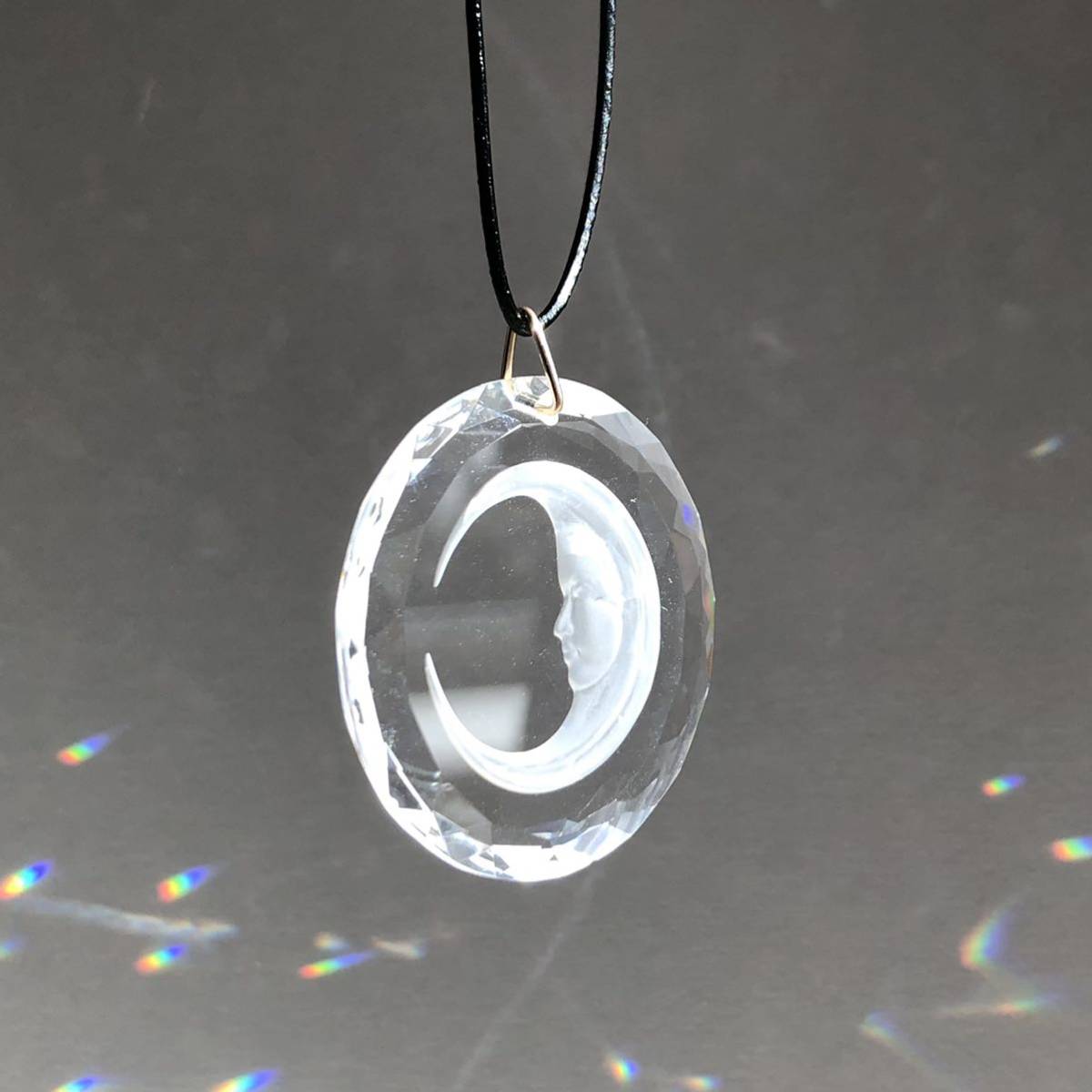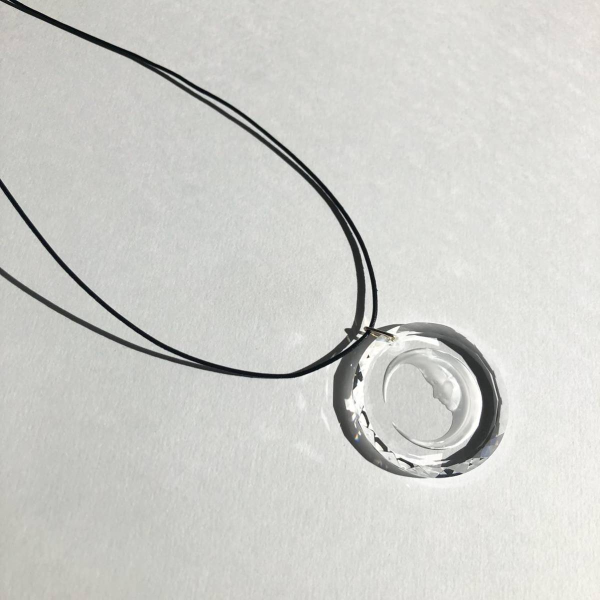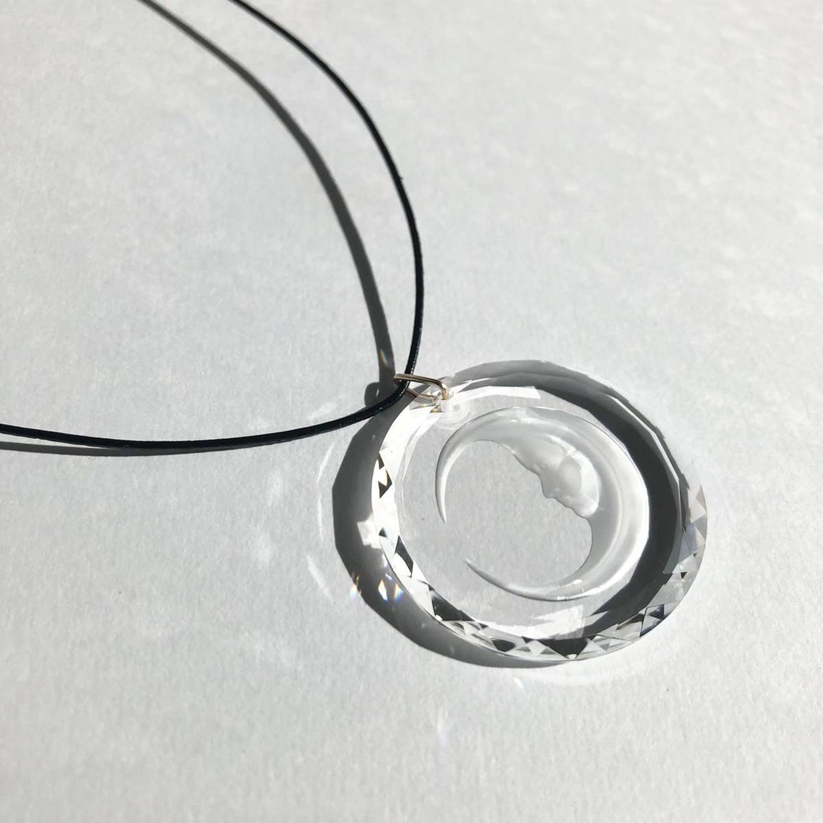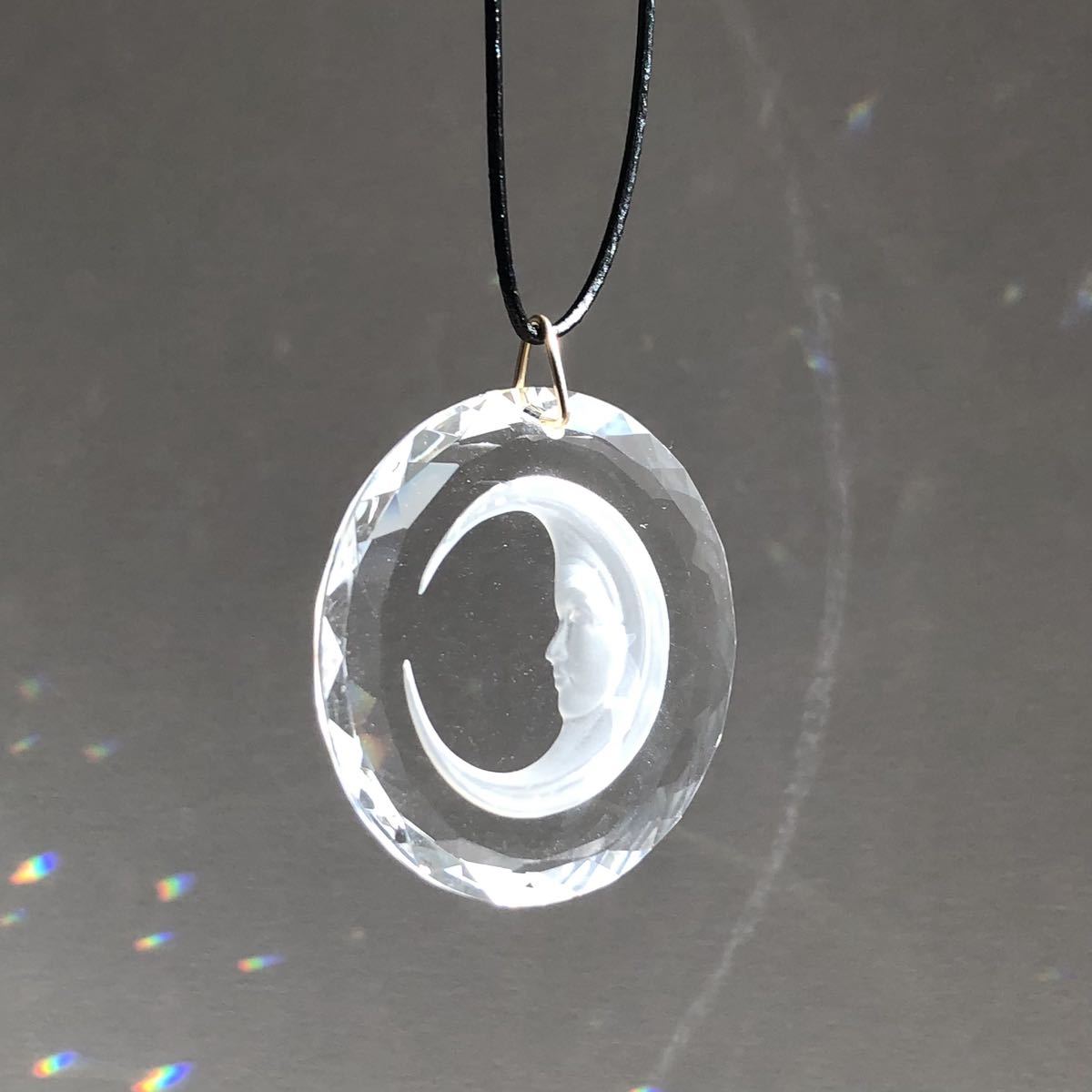 ヴィンテージスワロフスキー35mm 月 Moon 6050 黒本革ひもロングネックレス レア廃盤品サンドブラストインタリオ ビンテージ