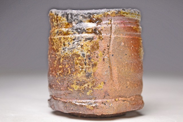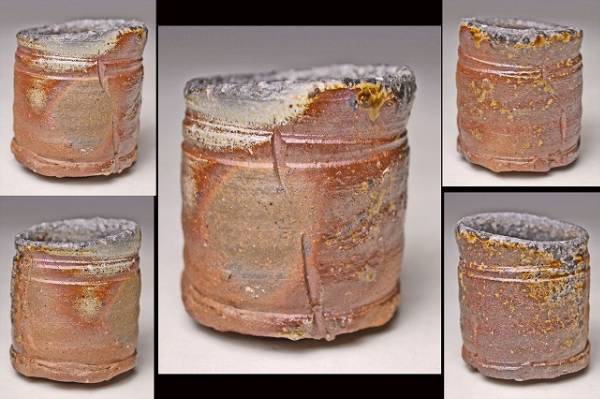 森青史 ★ 備前窯変灰被ぐい呑 ★ 共箱共布 ★ 検 穴窯 森陶山 火襷 酒器 盃
