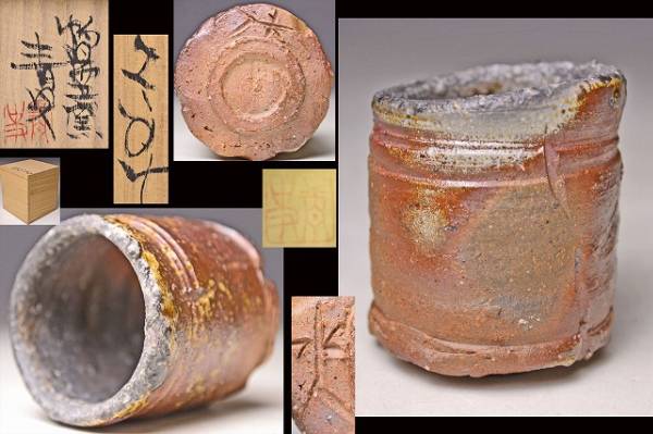 サイズは 55mmx52mmx高さ65mm です。 物故巨匠 森青史 氏の 作品です。 窯道具の 鞘 を 思わせる 独特の意匠 で 見事な 景色が 現れた 逸品です。 写真を参考の上 入札下さ い。 宅配便60サイズにて 発送します。他にも多数出品してます。同梱対応いたします。