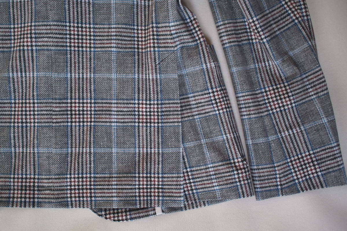 、コットン混 、ダークネイビー系 ホップサック調 グレンチェック 、ジャージーアンコンジャケット 、50サイズ(日本向けL~XLサイズ相当)。