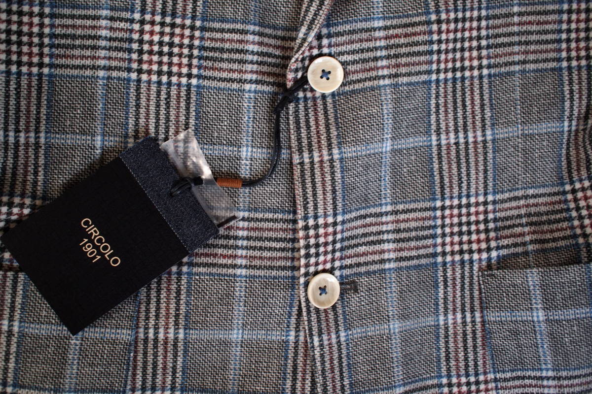 新品タグ付 イタリア CIRCOLO 1901 春夏 コットン混 ダークネイビー系 ホップサック グレンチェック 2B ジャージージャケット 50(L~XL)
