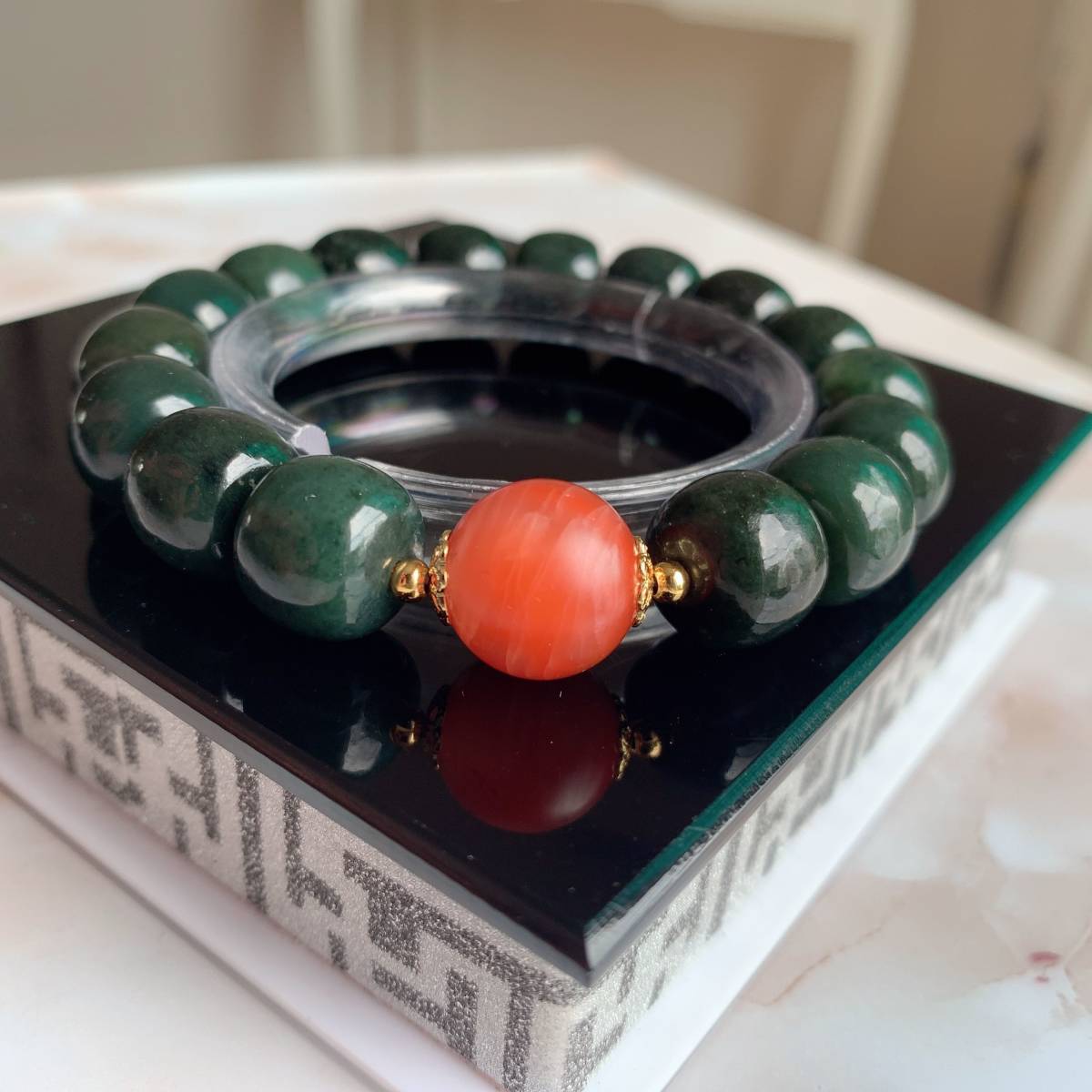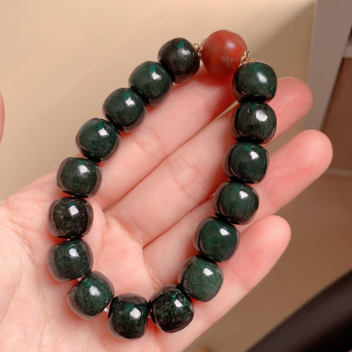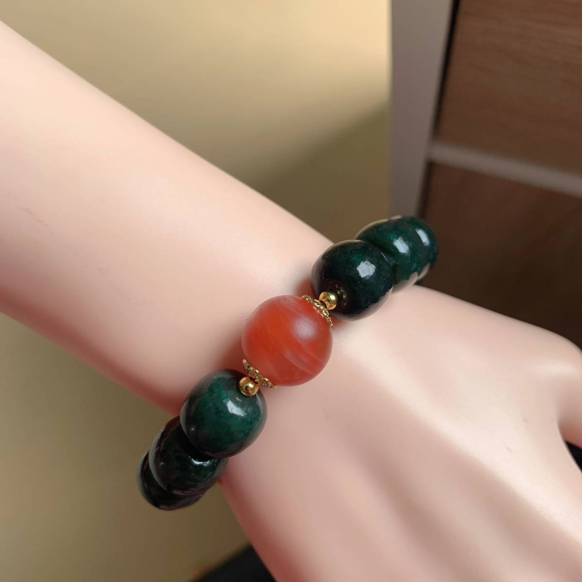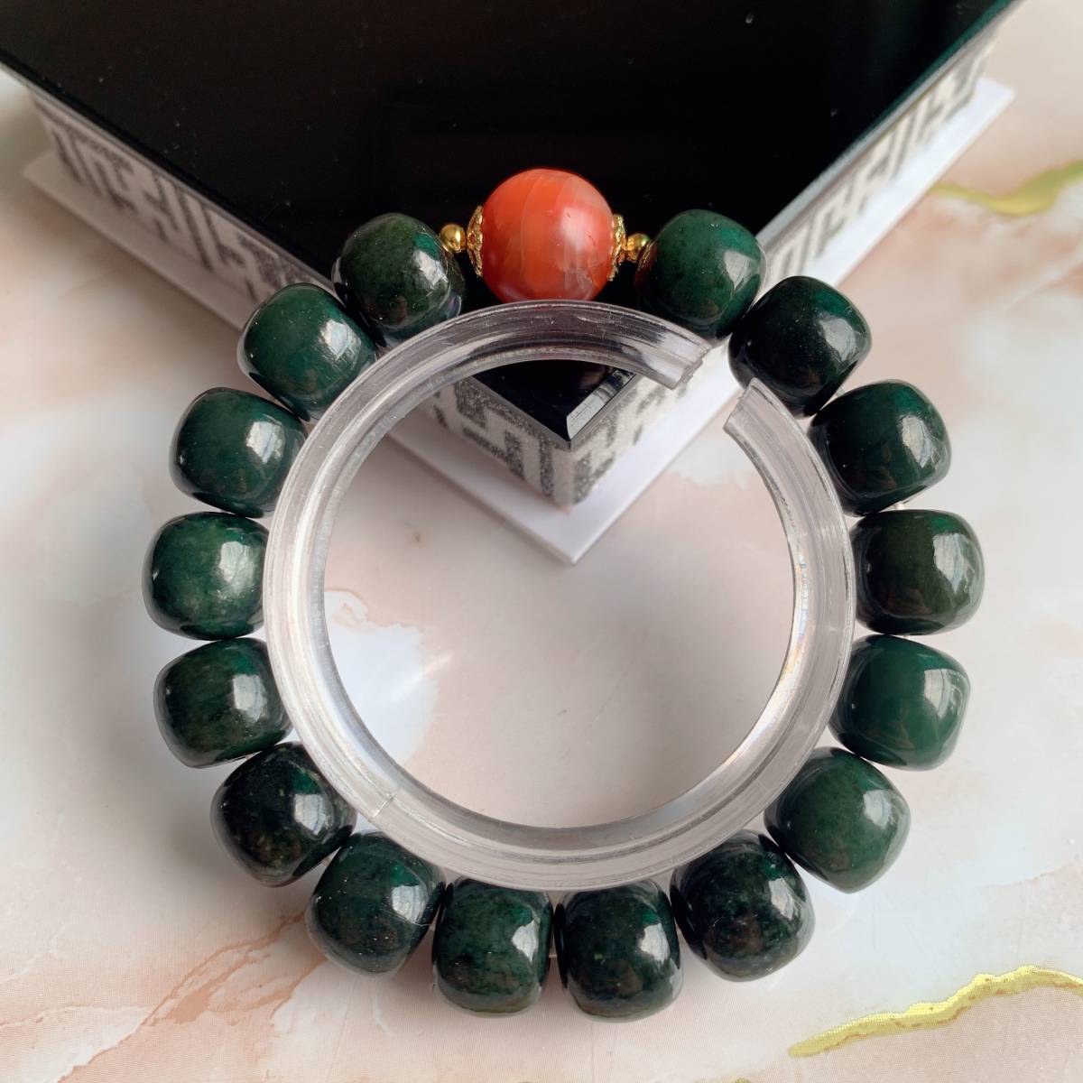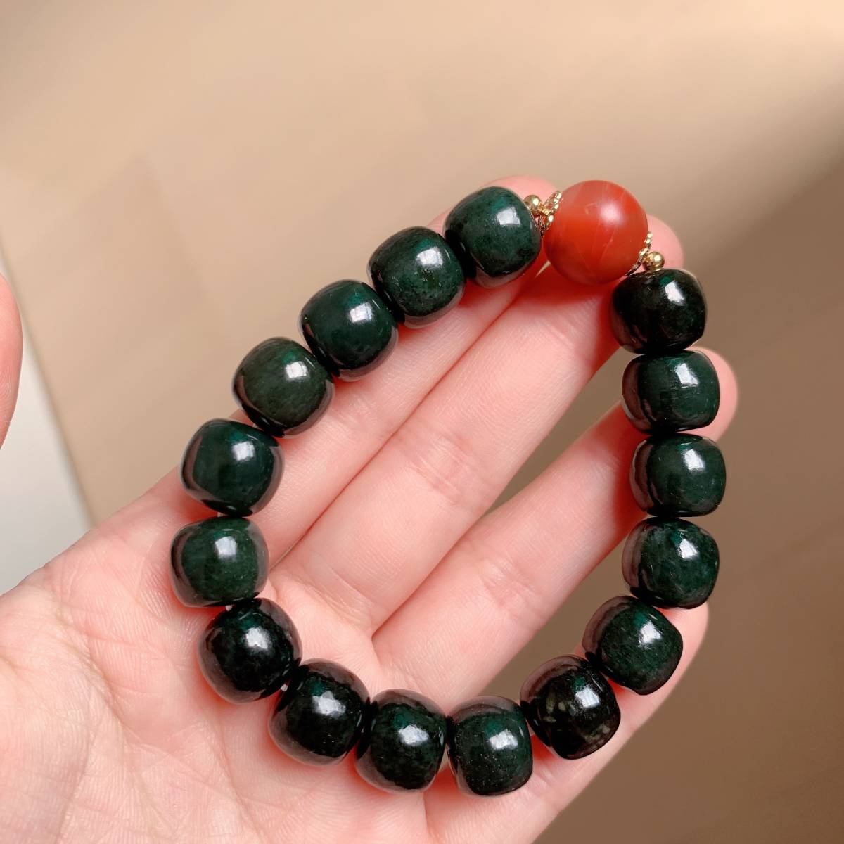 ☆和田玉+南紅瑪瑙1粒☆ブレスレット☆パワーストーン☆天然石☆ラッピング袋付き☆プレゼントにも 9BR52504