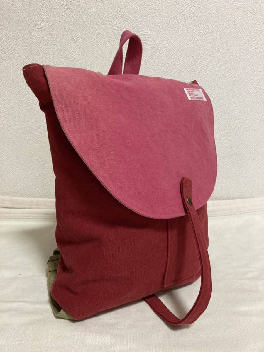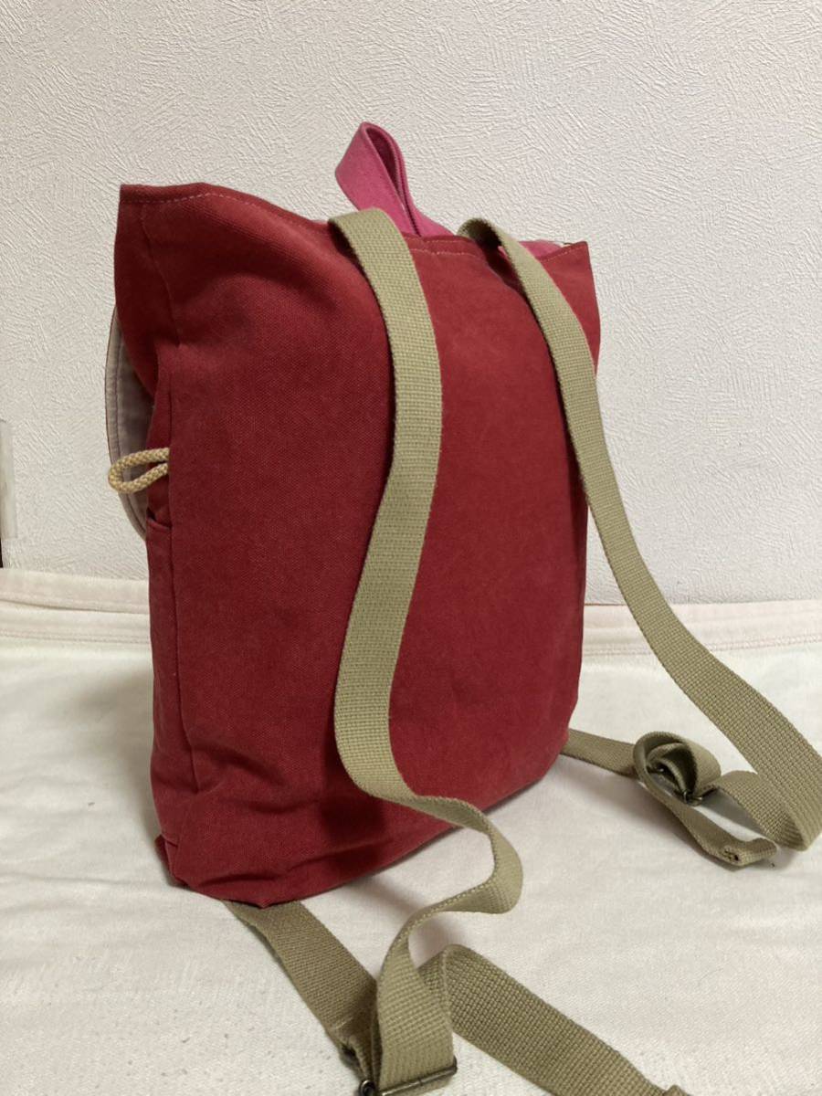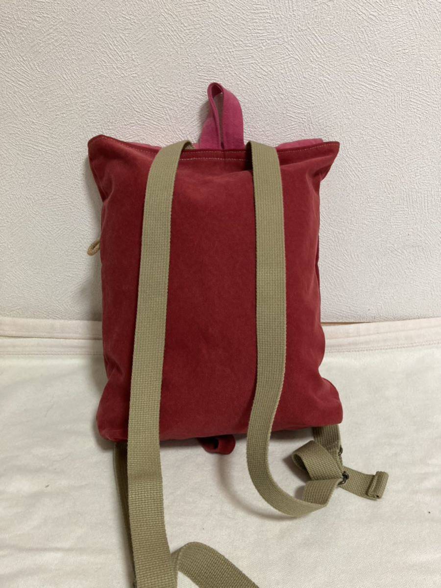 ハンドメイド 帆布ディパック 赤/ピンク お洒落 しっかりした帆布 希少 使える 激安!美品です。
