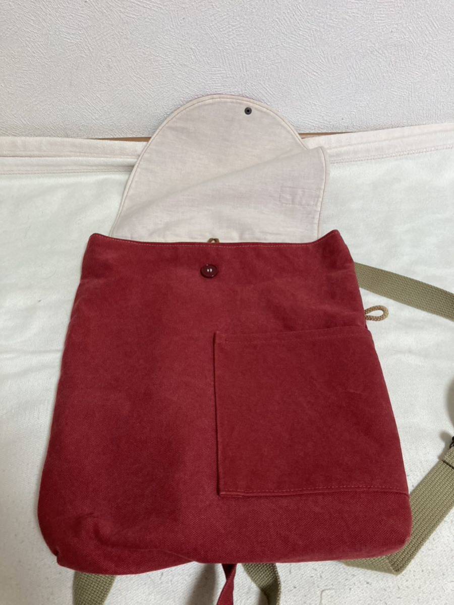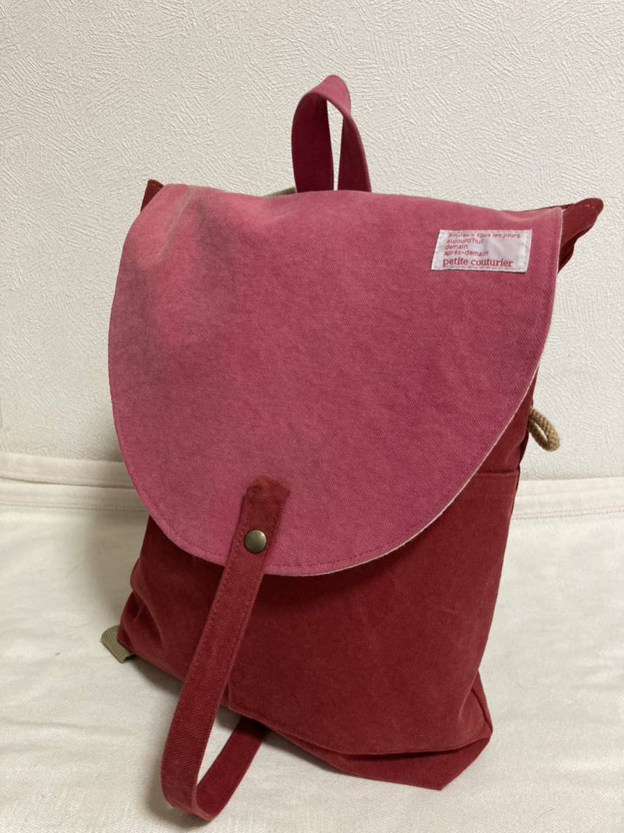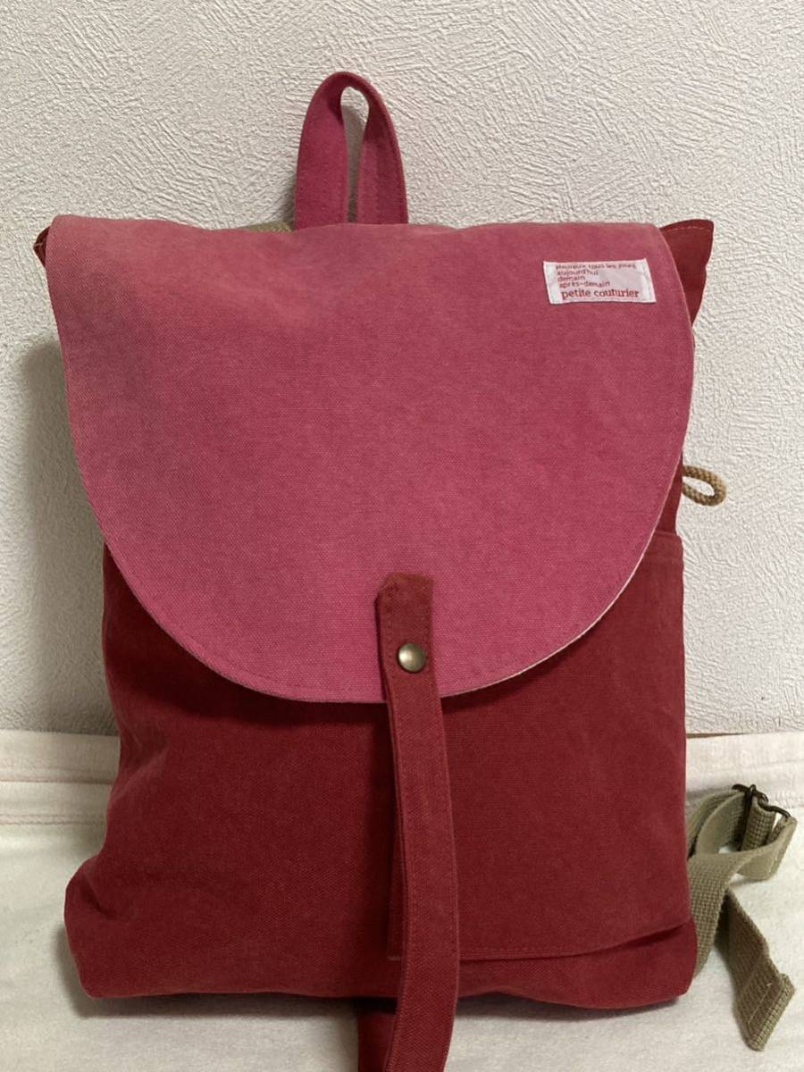 ハンドメイド 帆布ディパック 赤/ピンク お洒落 しっかりした帆布 希少 使える 激安!美品です。