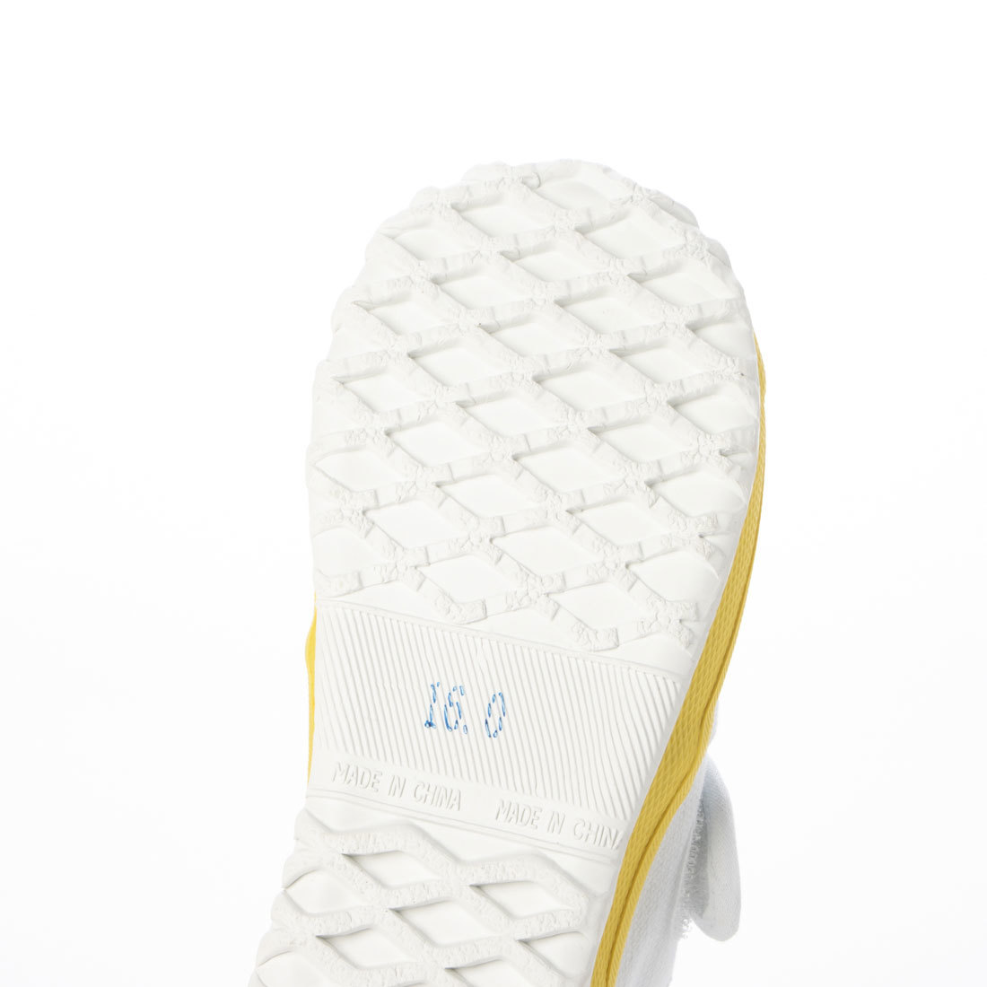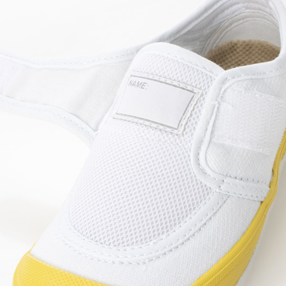 | ・マジックテープタイプ、メッシュ素材の上履き ・中敷きに通気穴を加工&抗菌防臭加工 ・つま先部分は幅広設計 ・マジックテープ下に名前記入タグ付き カラー:イエロー サイズ:25.0cm 素材:キャンバス素材+メッシュ 靴底:合成ゴム 中敷き:合成繊維カップインソール サイズ感:知り合いのお子さんに試し履きを依頼しました。 普段履いている上履きがブイゴムタイプで 同じサイズを履いてもらうと履き口がちょっと狭く感じ、 履いた後は幅広の為、靴の中での遊びが多いようです。 子供の足は、成長過程でなかなかピッタリ合うサイズは難しいようです。 サイズ変更の際は、往復送料をお願いする事になるので お客様責任でサイズ選択をお願い致します。 | |||