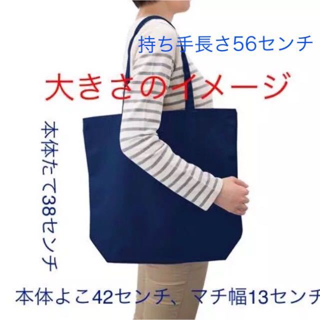 持ち手を除いた本体サイズはたてたて38cm×よこ42cm×マチ幅13cm、持ち手の長さ56cm、新品。