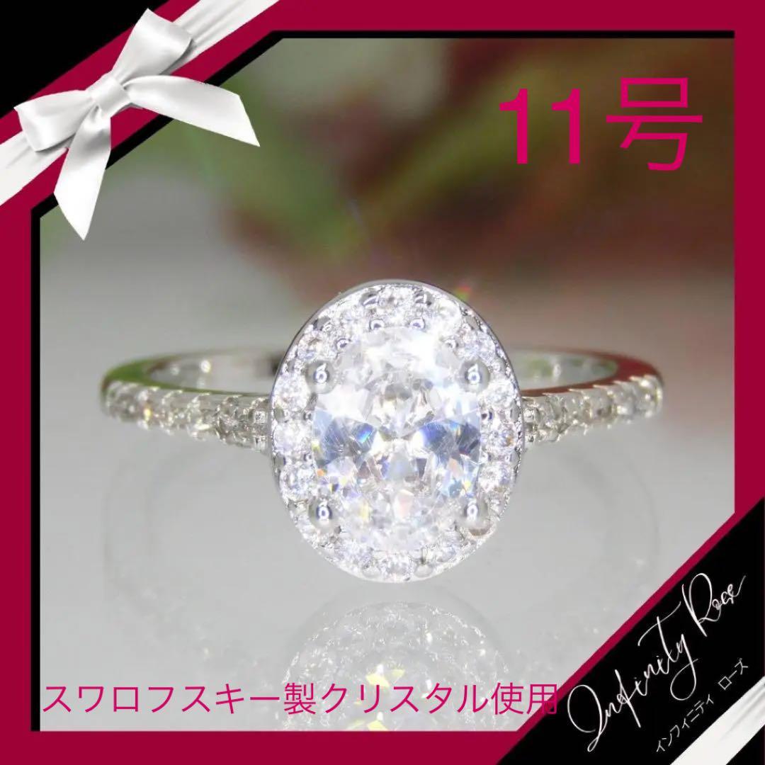 (1080)11号 シルバー高価なオーバルスワロ豪華爪留めリング 指輪 スワロフスキー製クリスタル使用