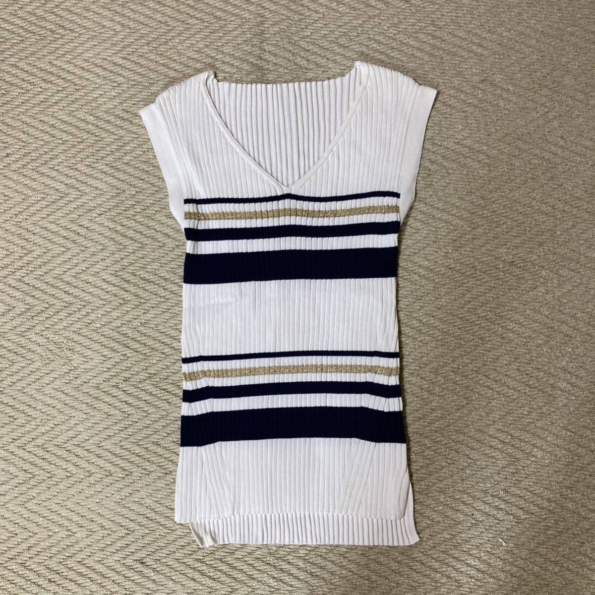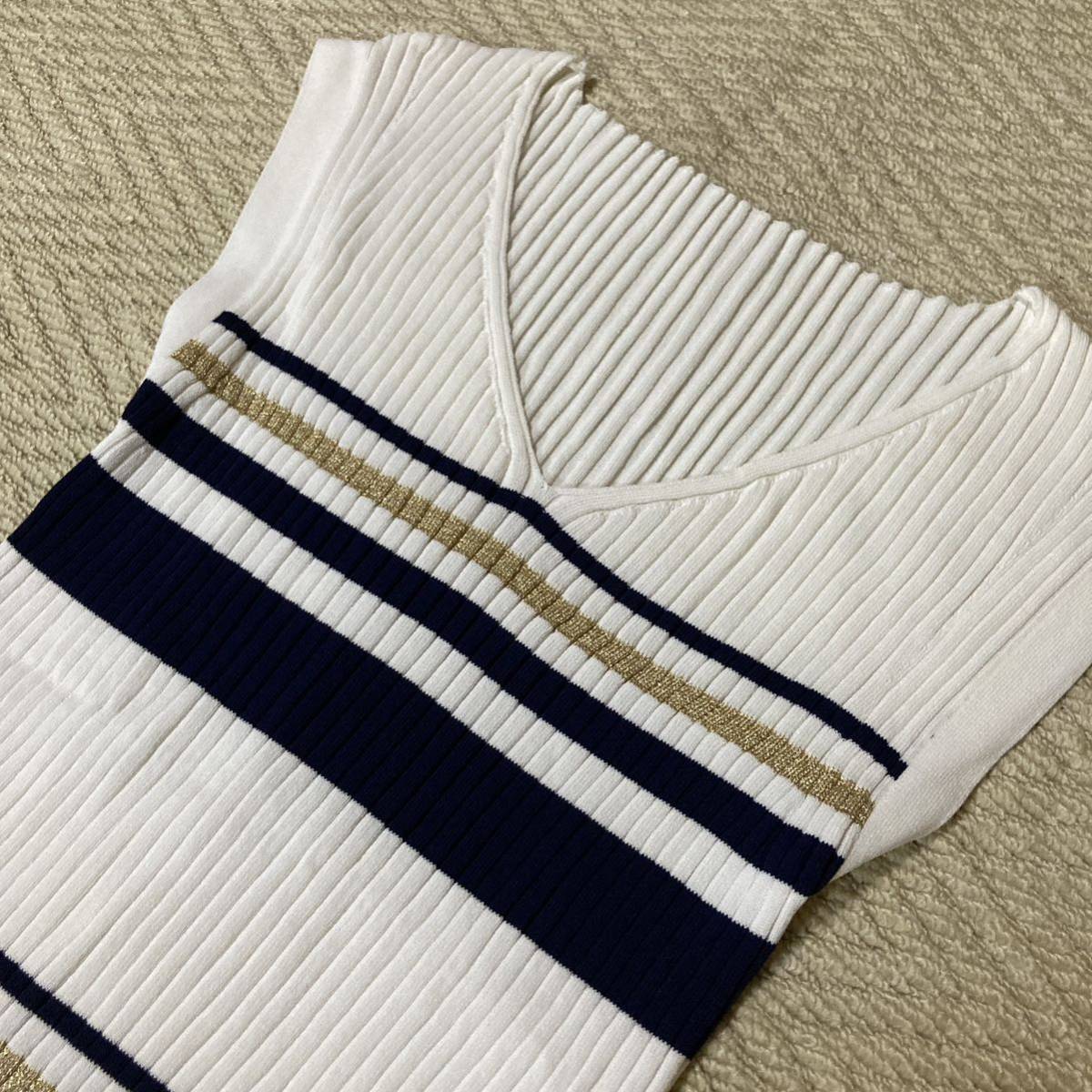 ワイドリブVネックニット