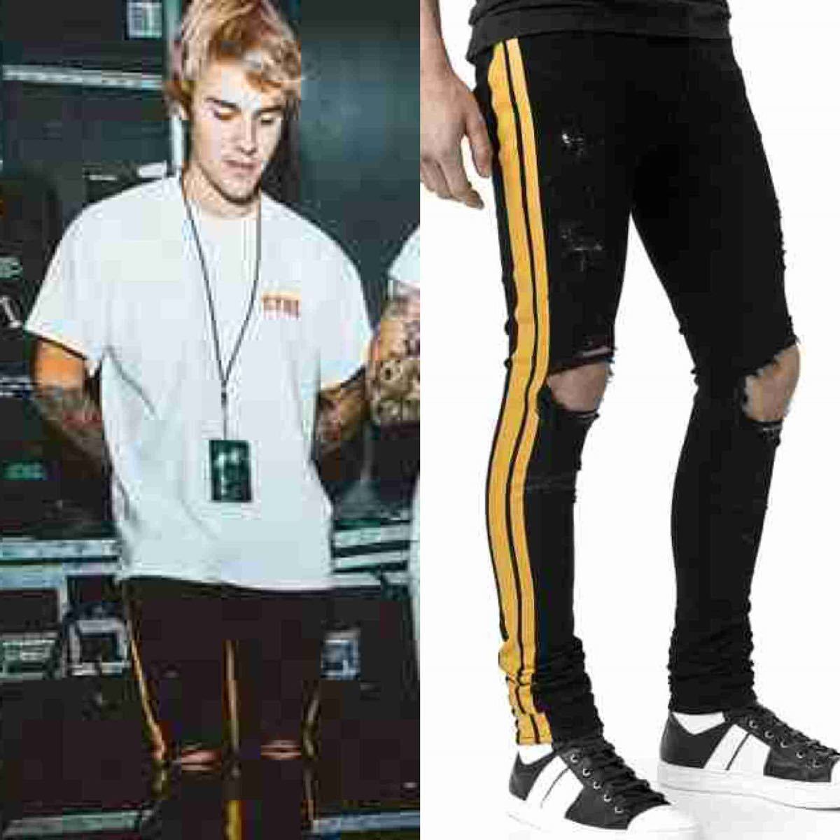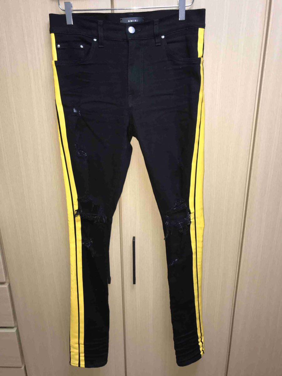 国内正規 限定 18SS AMIRI アミリ TRACK JEAN トラックジーン ストレッチ スキニー クラッシュ ダメージ デニムパンツ 黒黄 30
