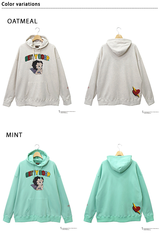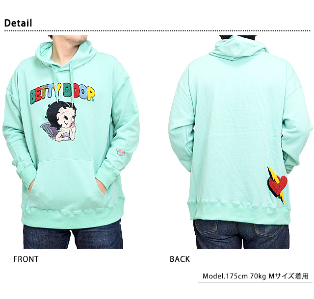 ロウブロウナックルから「LBK×BETTY エンジェルBettyフーディー(592867)」のご紹介です。 大きな瞳とぽってりした赤い唇が印象的な女の子、ベティ・ブープ(Betty Boop)。 二種類の刺繍技法をふんだんに使ったプルパーカーが登場しました。 みんなのアイドルBETTY BOOPが、天から舞い降りた天使に扮した姿をフロントにデザインしました。 一枚でのスタイリングはもちろん、ベストやアウターと合わせてインナーとしてのコーディネートもオススメの一枚です! | ||||||||||||||||||||||||||