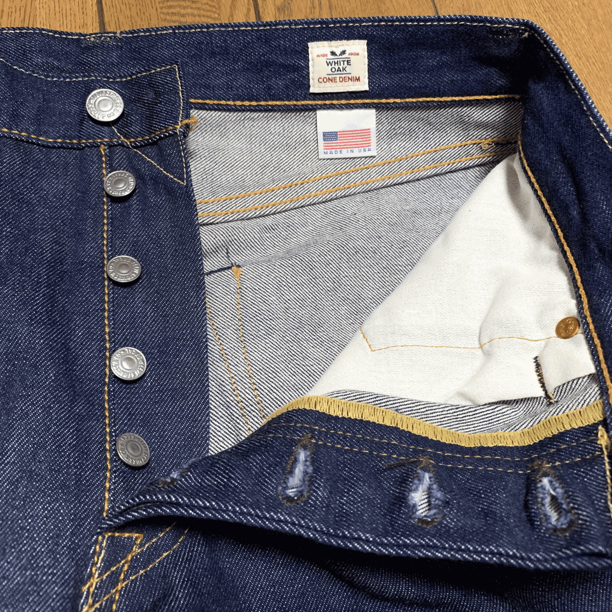 往年のファンから惜しまれつつ閉鎖したホワイトオーク工場製のデニムを使用しております。