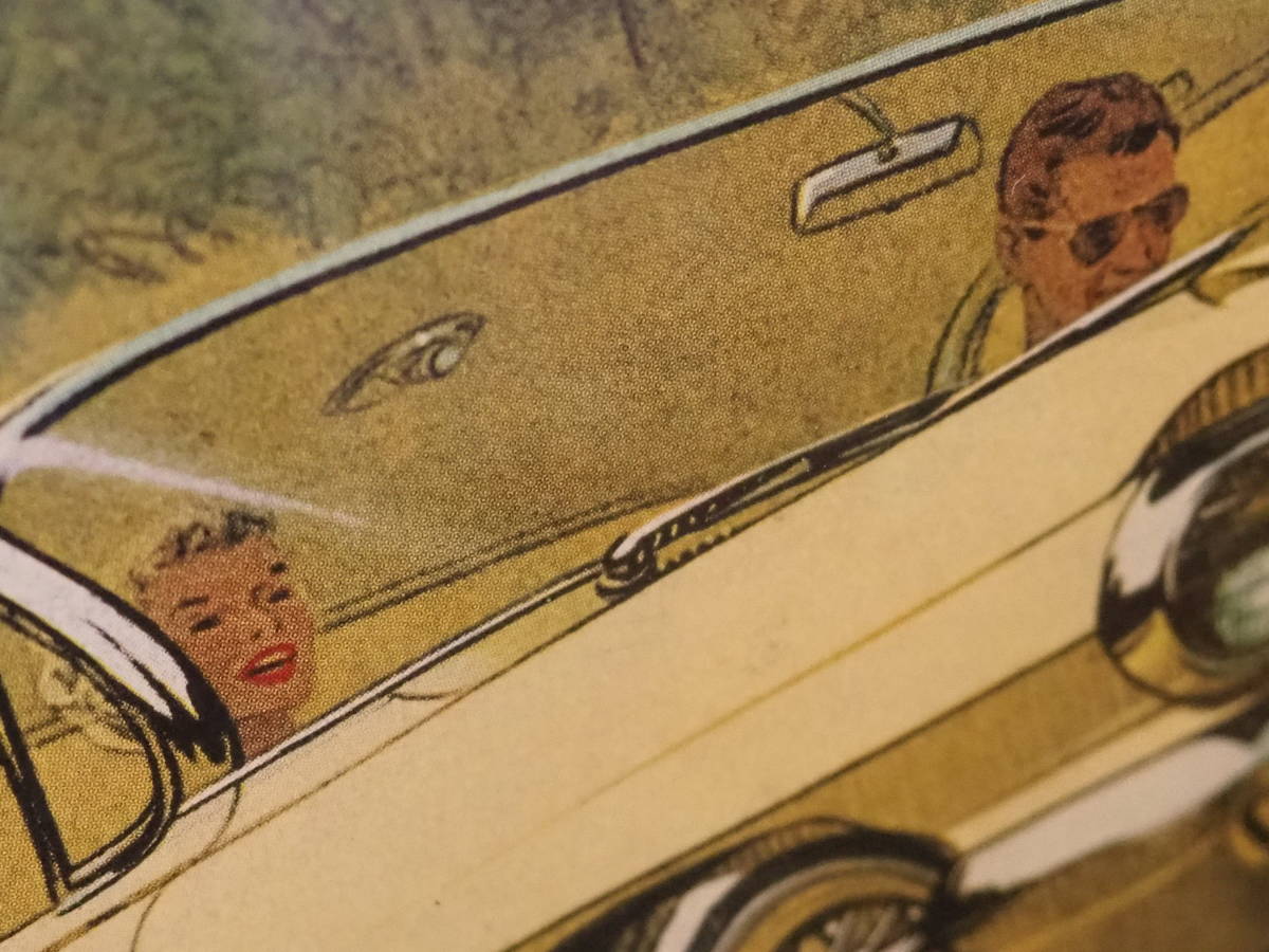 人物はマリリンモンローとジョーディマジオにも見えますが詳細は不明です。