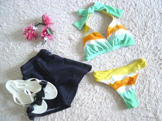 ★新品6万相当海外ブランド他8点/大容量バッグ+ロングスカート+キャミ+水着+クリアウエッジソール+海水浴リボン付サンダル福袋/局留め可能