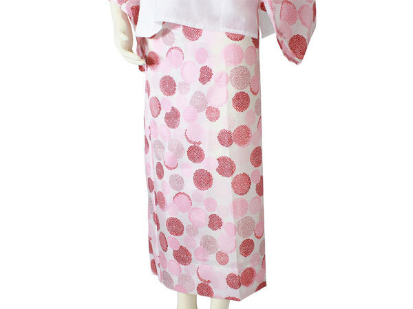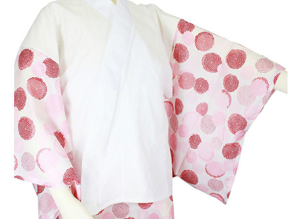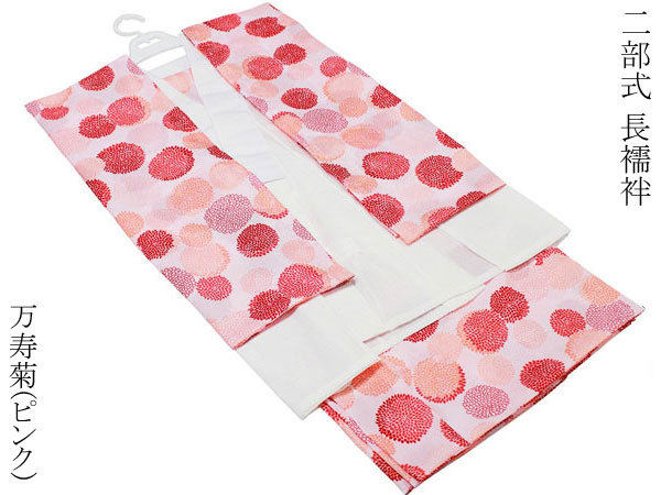 | ・半衿付なので、すぐお召しになれます。 ・半襦袢と裾よけに分かれているので 着崩れなどが直しやすいです。 ・ご自宅で簡単にお洗濯が出来ます。 ・袖と裾よけ部分が色・柄付きになっています。 ・外出着用、普段着用としてご使用いただけます。 ■色 万寿菊 ピンク ■日本製 ■素材 袖・半衿・生地本体/ポリエステル100% 身頃・腰布/綿100% ■2Lサイズ:半襦袢/身丈:67cm・裄/67cm・袖丈/49cm ・裾除/裾廻り:160cm・丈/100cm ■メール便送料無料 | ||