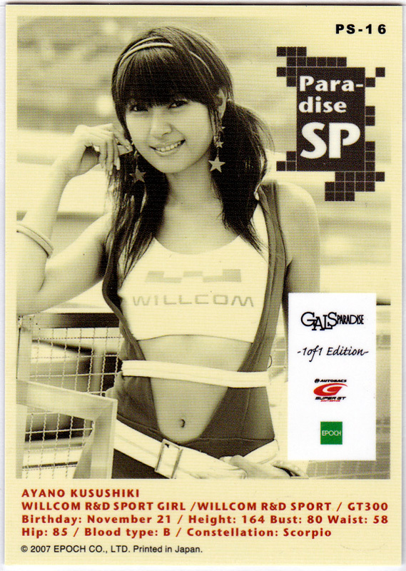 ▼2007 EPOCH ギャルズパラダイス パラダイススペシャル インサートカード No.PS-16 楠織あやの レースクイーン トレカ GALS PARADISE