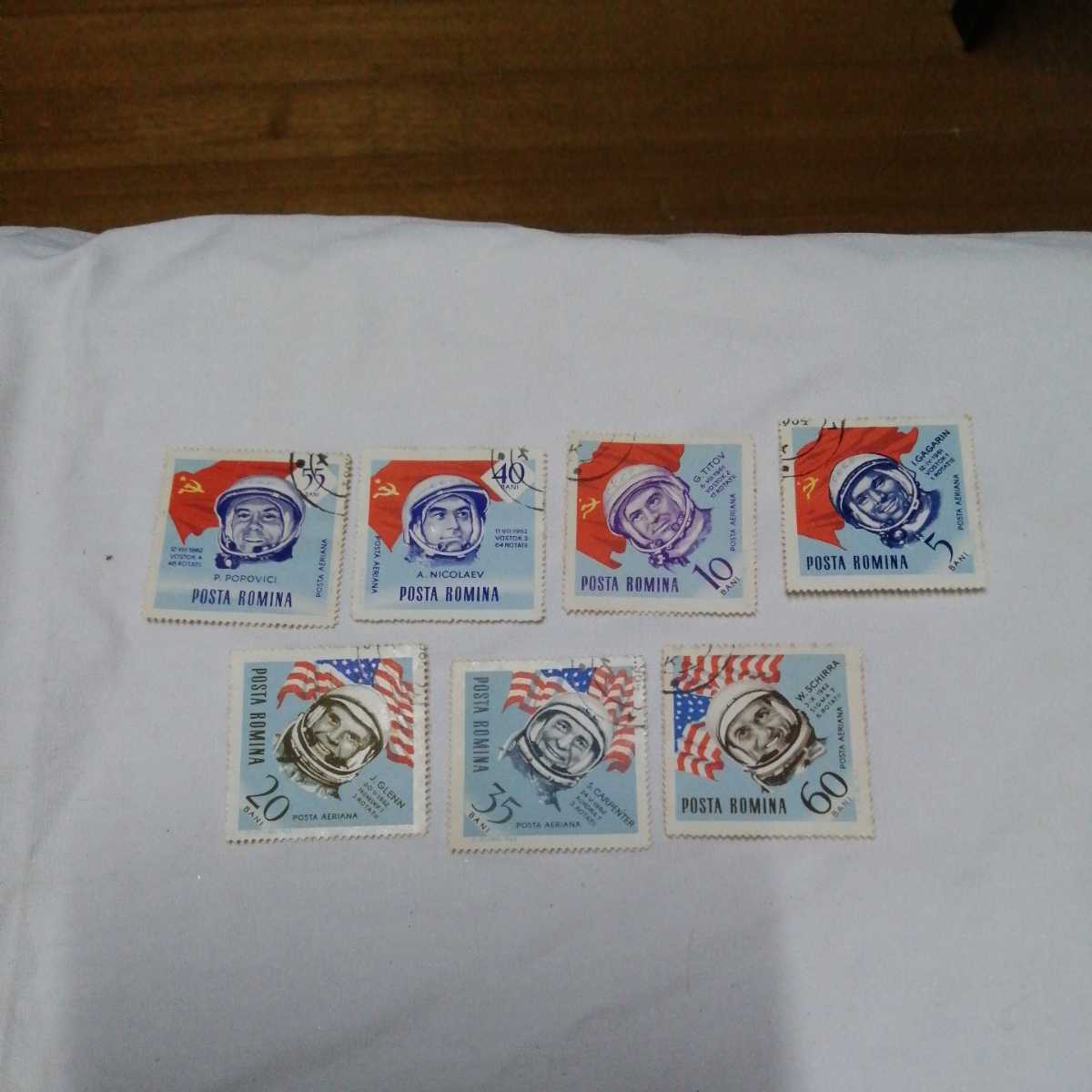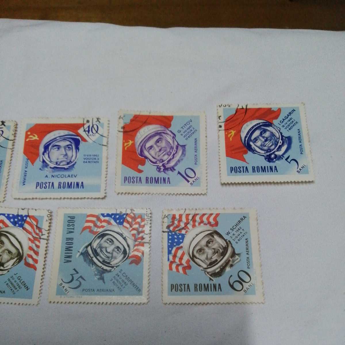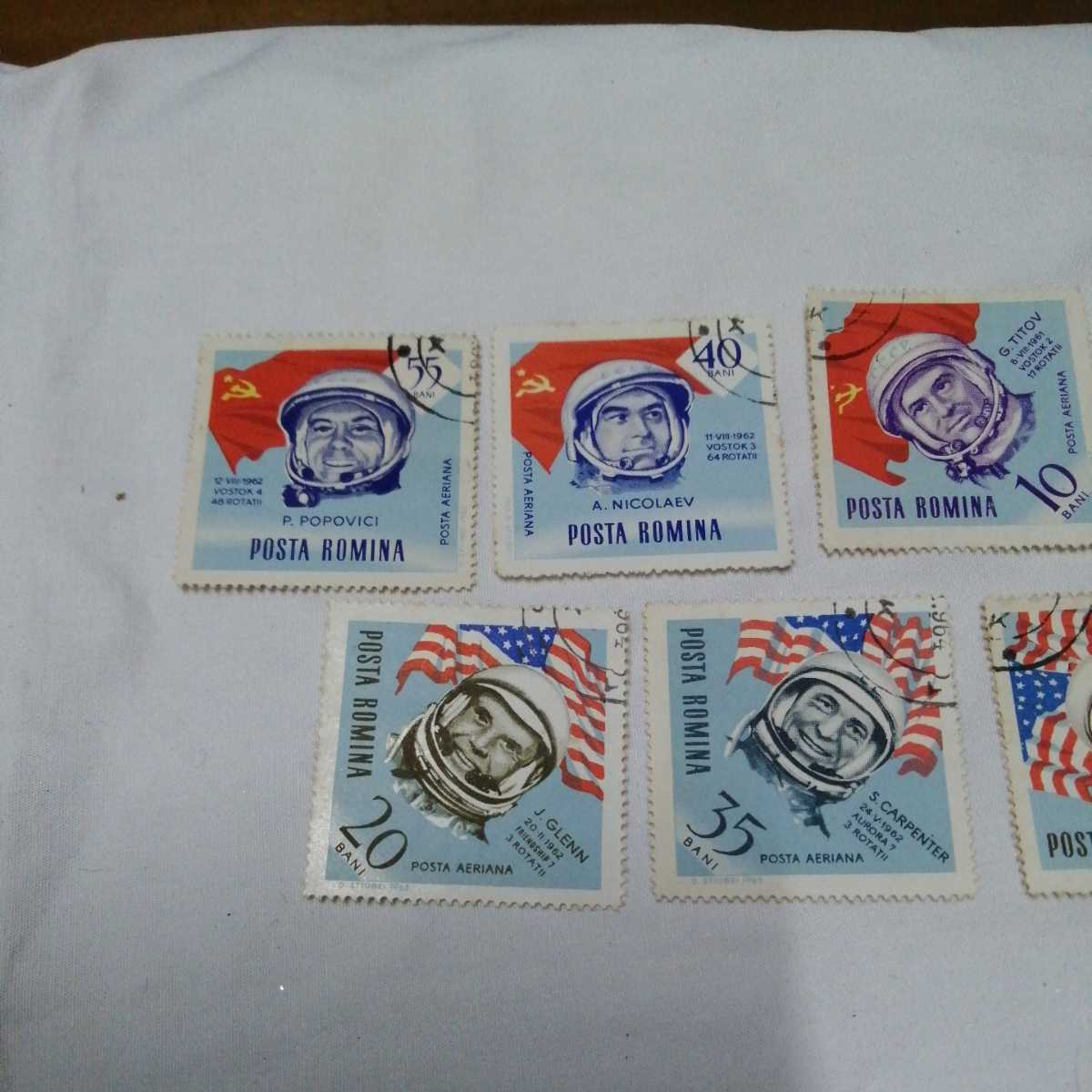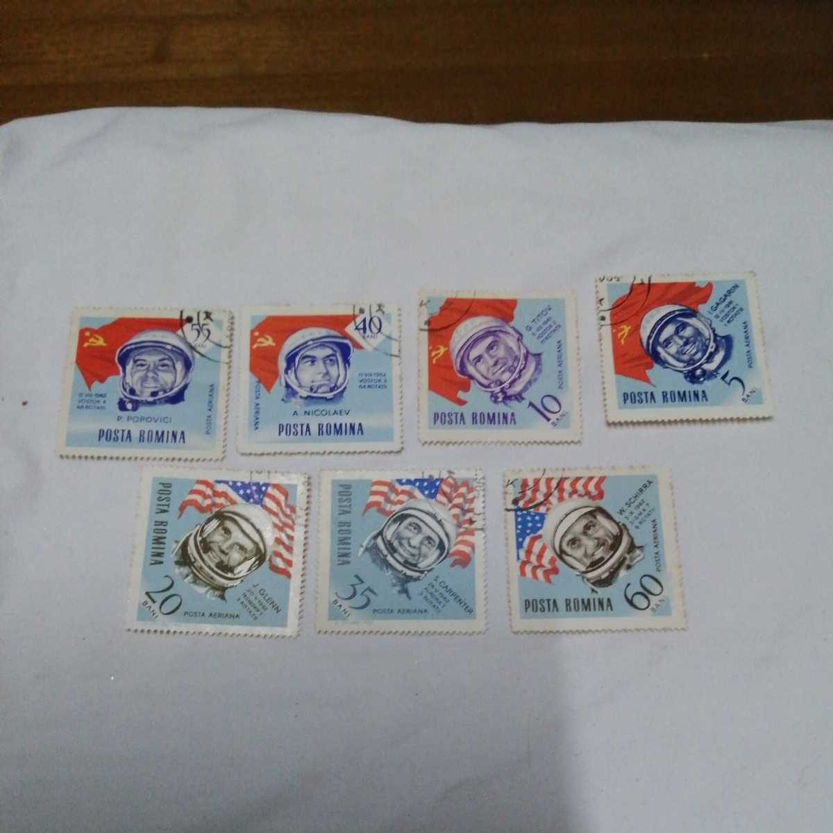 計7枚 ルーマニア 切手 ガガーリン他 宇宙飛行士 7人 コレクター所持品 発送クリップポスト可能