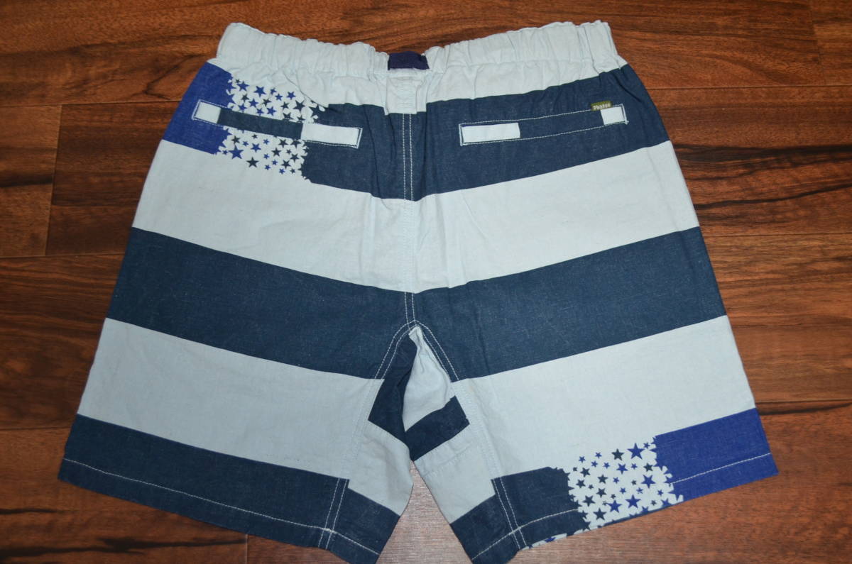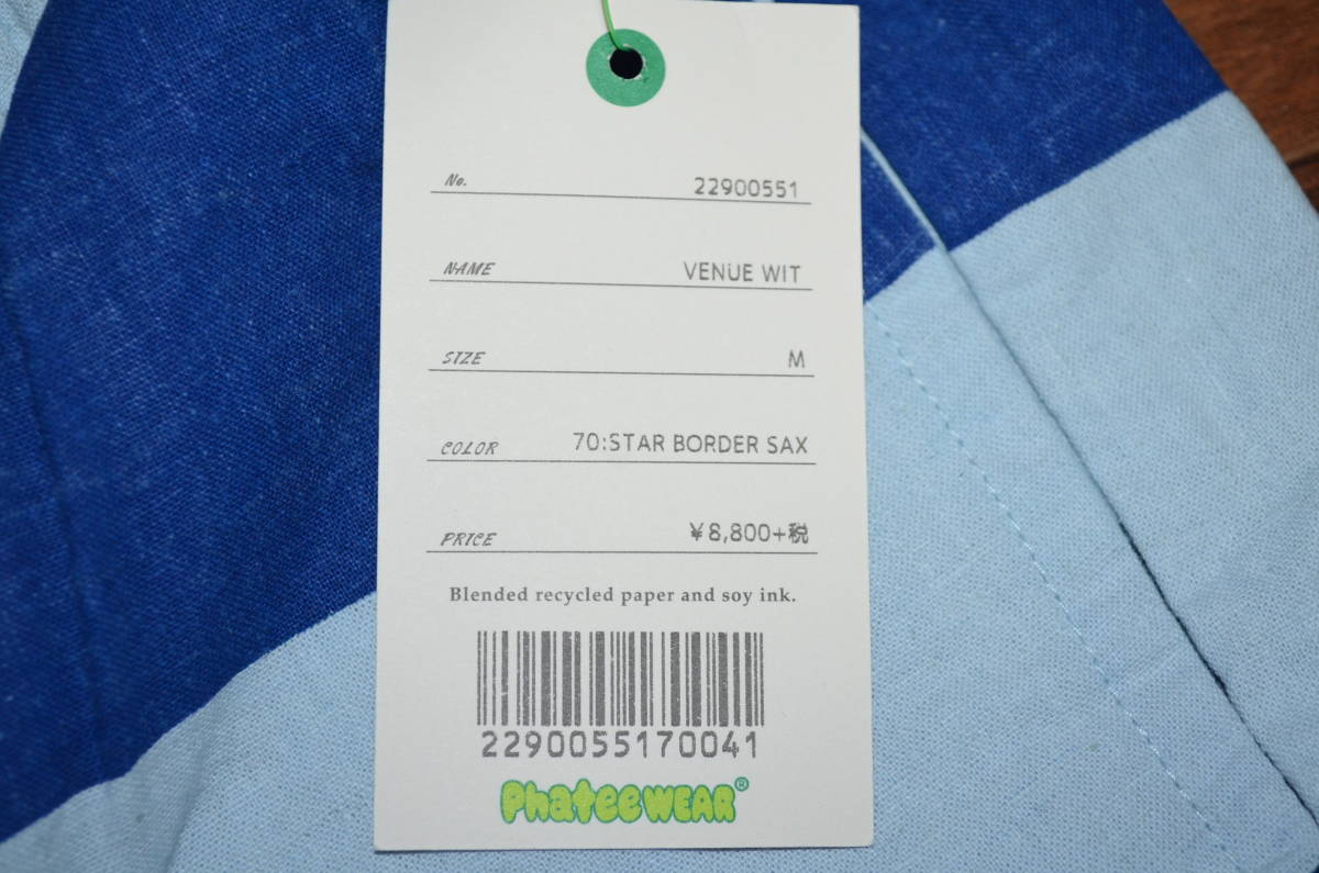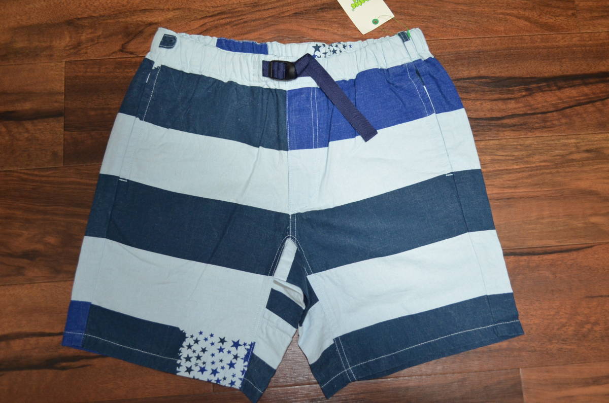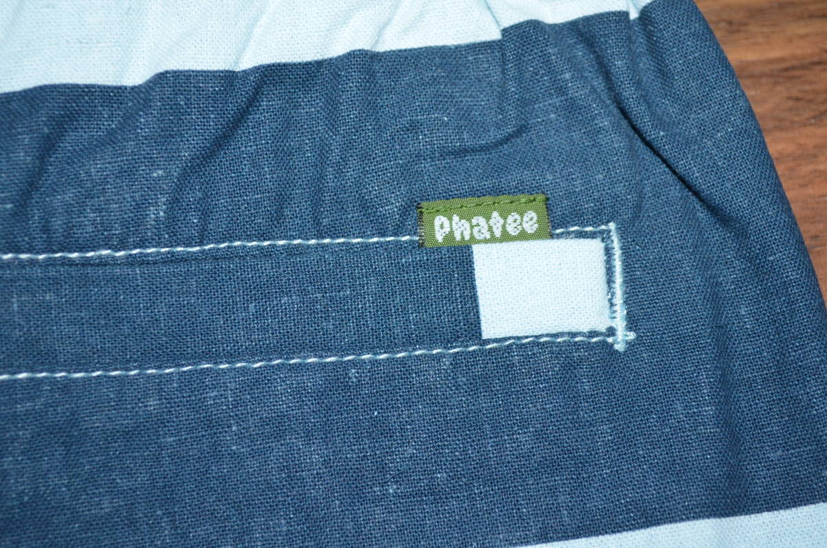 ファッティーPhateeWearベニューショーツ”VENUE WIT”新品タグ付きです。カラー表記はSTAR BORDER SAXで、サイズはМです。実寸でウエスト80cm前後股下20cm股上25cm裾幅27cm多少の誤差はお許し下さい。ウエスト部分は、ゴムとベルトで調節が可能。ヘンプ55%コットン45%。定価8800円+税。
