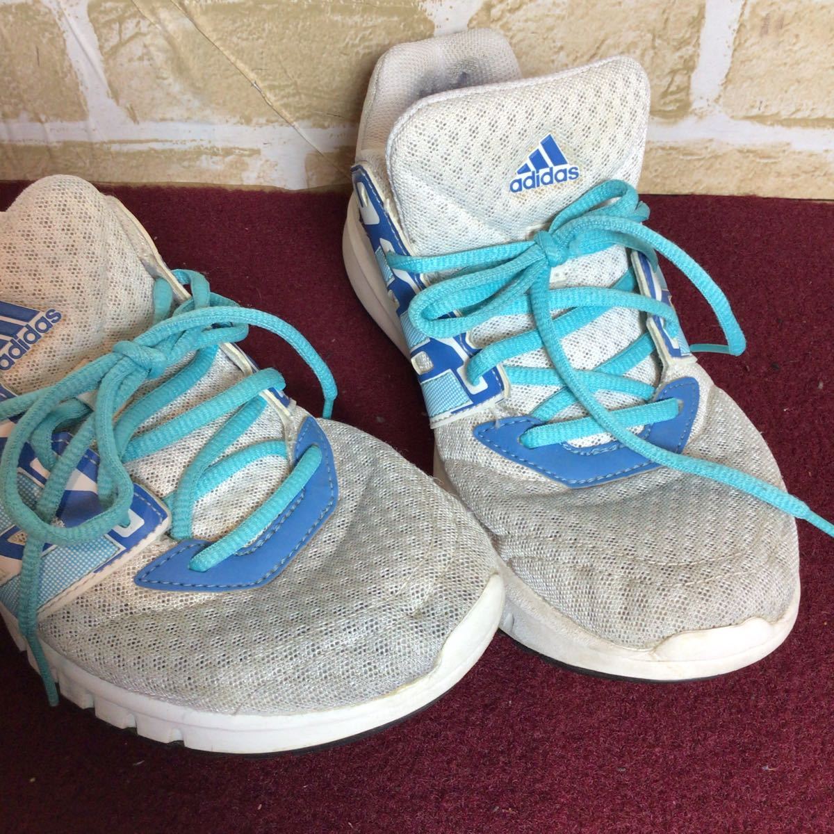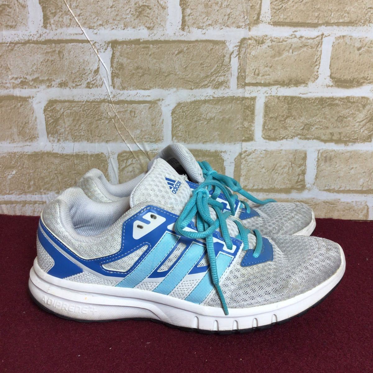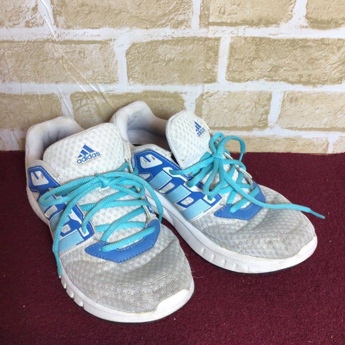 【売り切り!送料無料!】A-201 adidas!ランニングスニーカー!白!水色!24.0cm!ウォーキング!トレーニング!汚れあり!中古!
