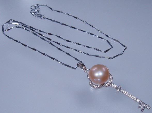 n22388 18KGP 925銀と天然真珠ペンダントトップ チェーン付き パール