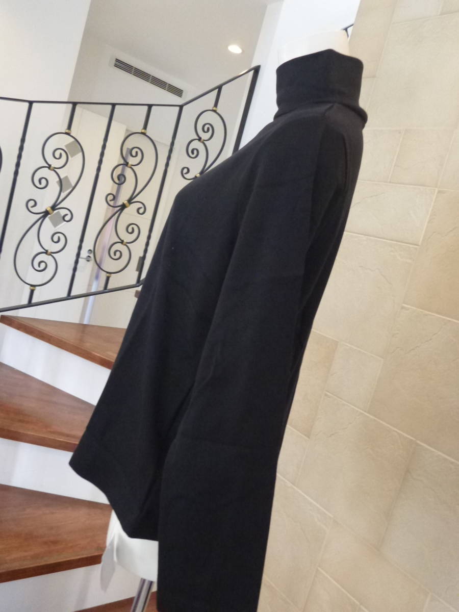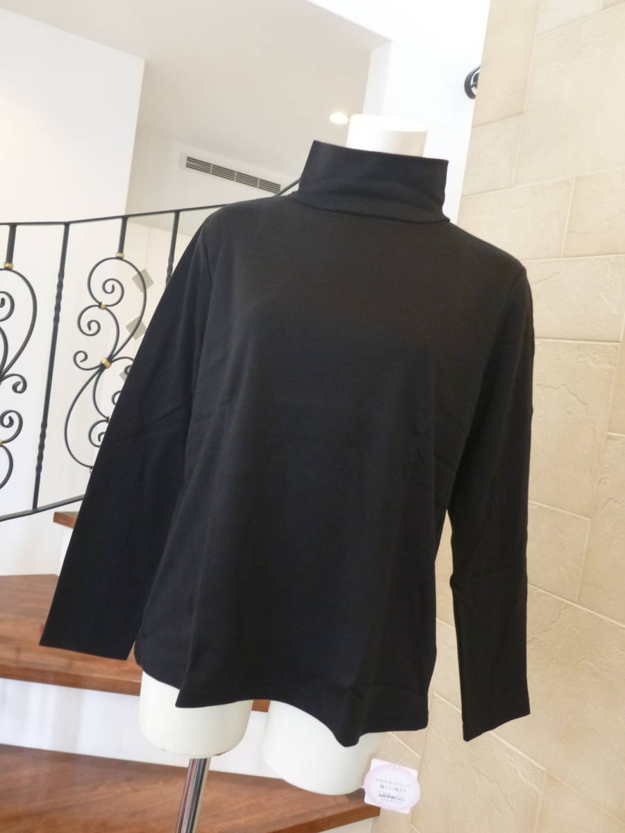 新品  黒 ブラック 裏地起毛 タートル トップス L