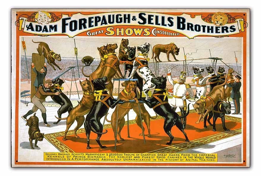 雑貨【サーカス ヴィンテージ広告】circus/ティンサイン/メタルプレート/ブリキ看板/レトロ/アンティーク風/tin/208-GreatDanes1898