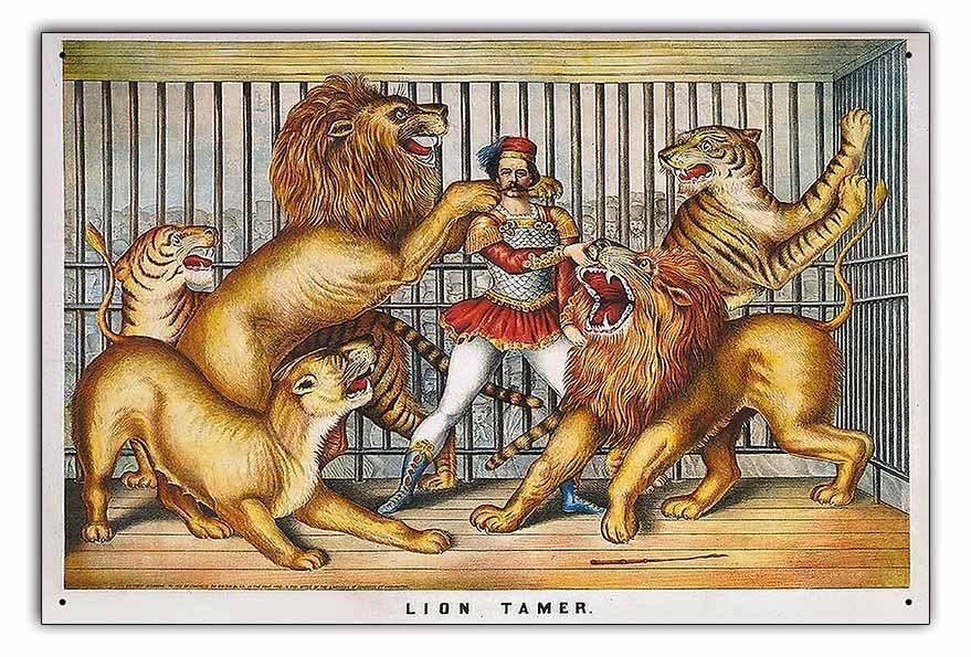 雑貨【サーカス ヴィンテージ広告】circus/ティンサイン/メタルプレート/ブリキ看板/レトロ/アンティーク風/tin/159-LionTamer