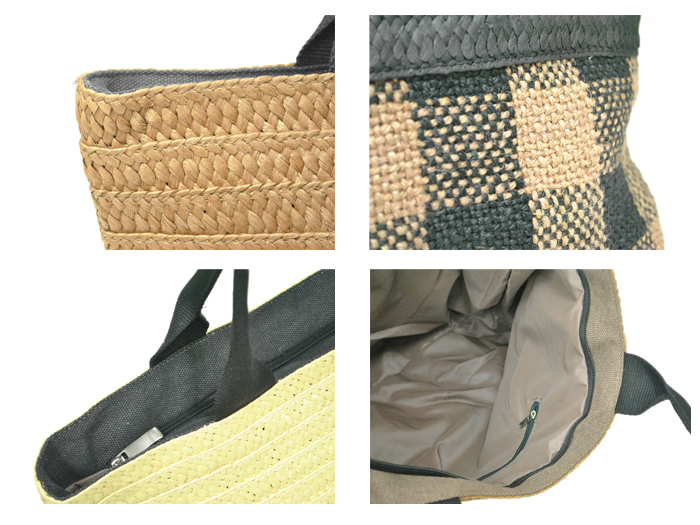 新品 かわいい 大きめ チェック & ブレード トートバッグ ハンドバッグ 手提げ 自然素材 レディース BAG ntnv