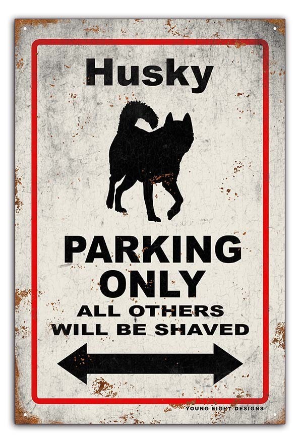 雑貨【Husky Dog/ハスキー・ドッグ】ドッグパーキング/メタルプレート/ブリキ看板/ヴィンテージ/サビ風-129