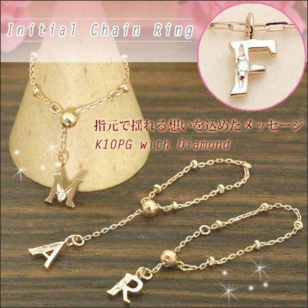 上品なのに可愛らしいブロック体のチャームに、ワンポイントでダイヤモンドを留めました。人気のイニシャルシリーズにチェーンリングが仲間入りです。