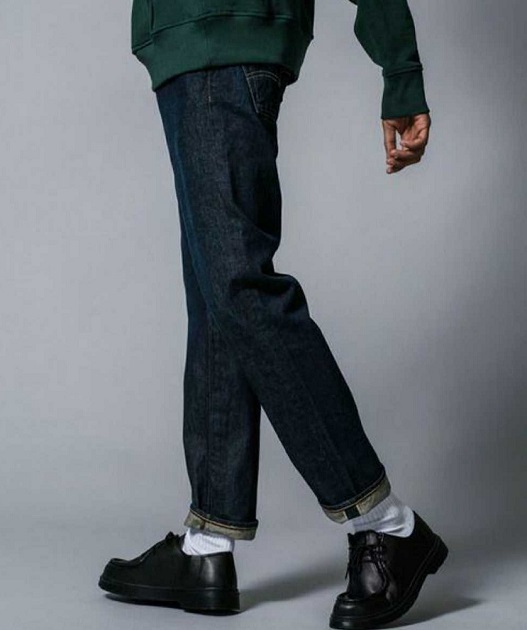 すそ幅がやや狭く設定されているので、ワークブーツよりもスニーカーやレザーシューズがしっくりきます。